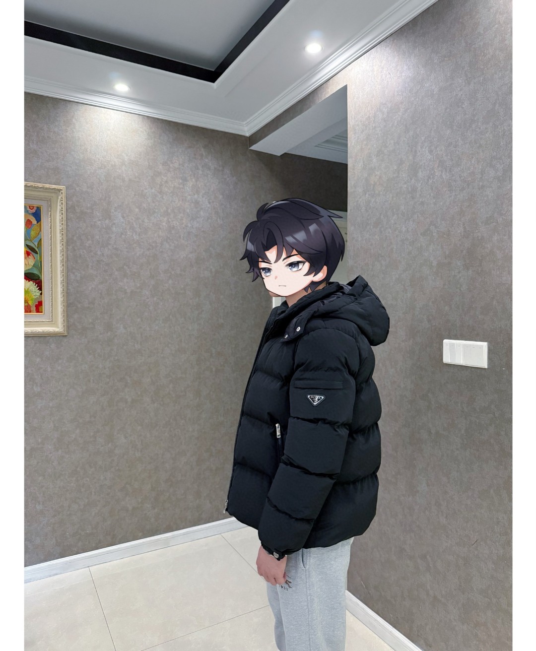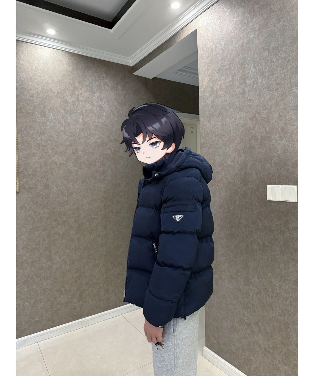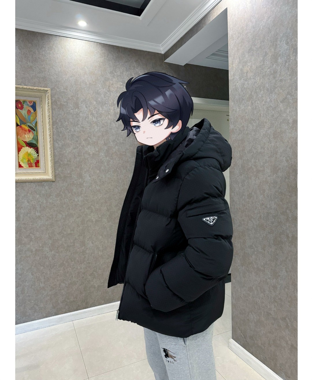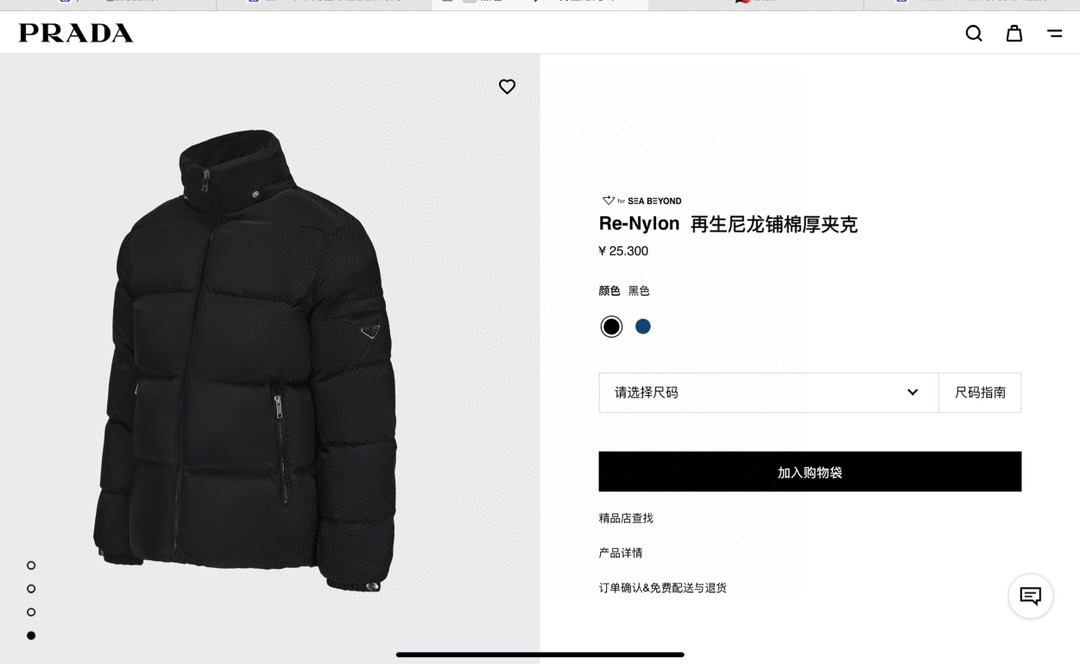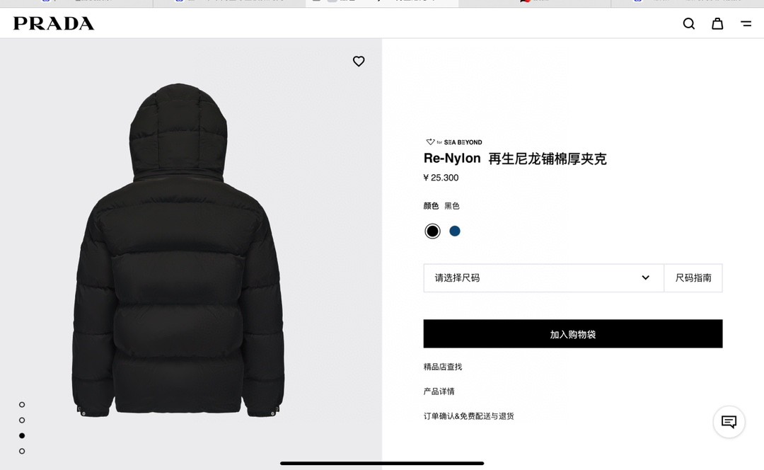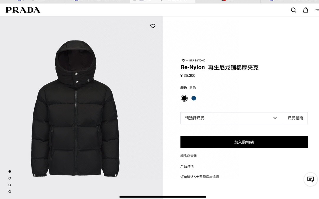 普拉达绗缝抗寒高蓬可拆卸帽棉服 再生尼龙防风拒水面料
