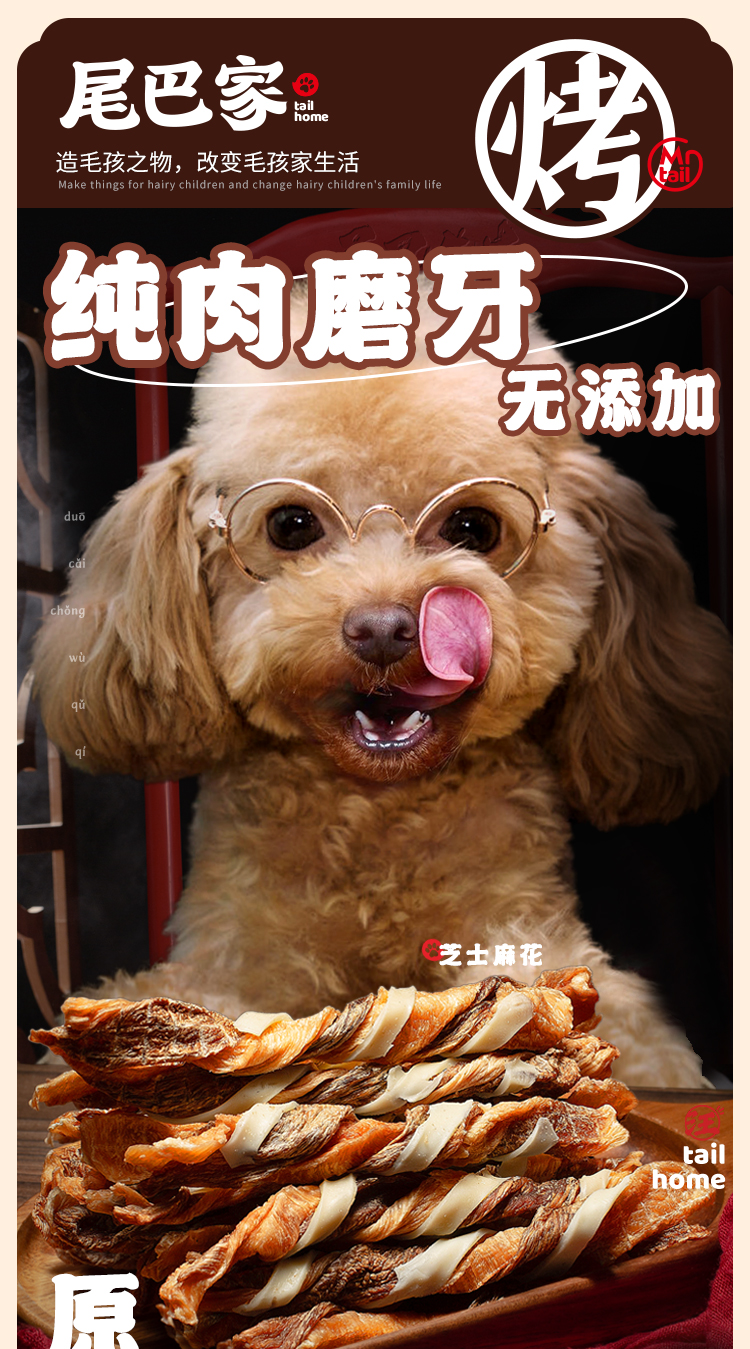 尾巴先生狗狗零食磨牙洁齿肉干泰迪零食鸡肉绕牛筋洁齿手工零食