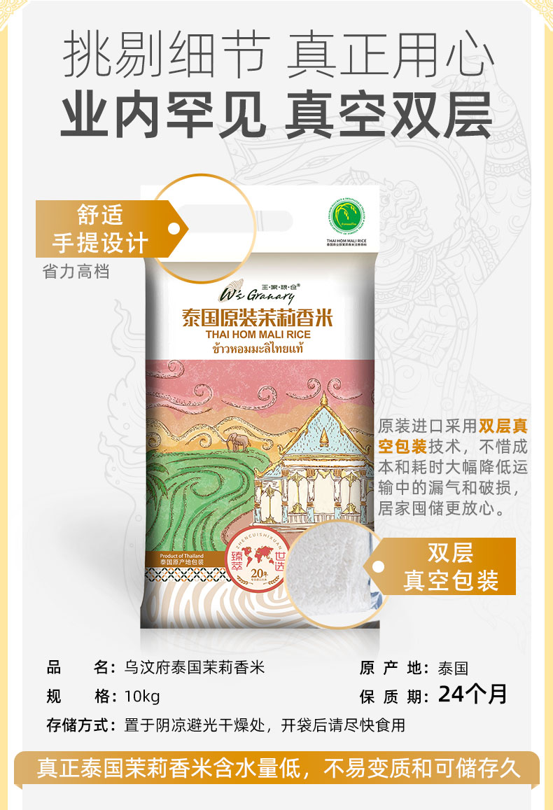 泰国进口 王家粮仓 乌汶府泰国茉莉香米 泰国大米 真空包装 长粒香米10kg