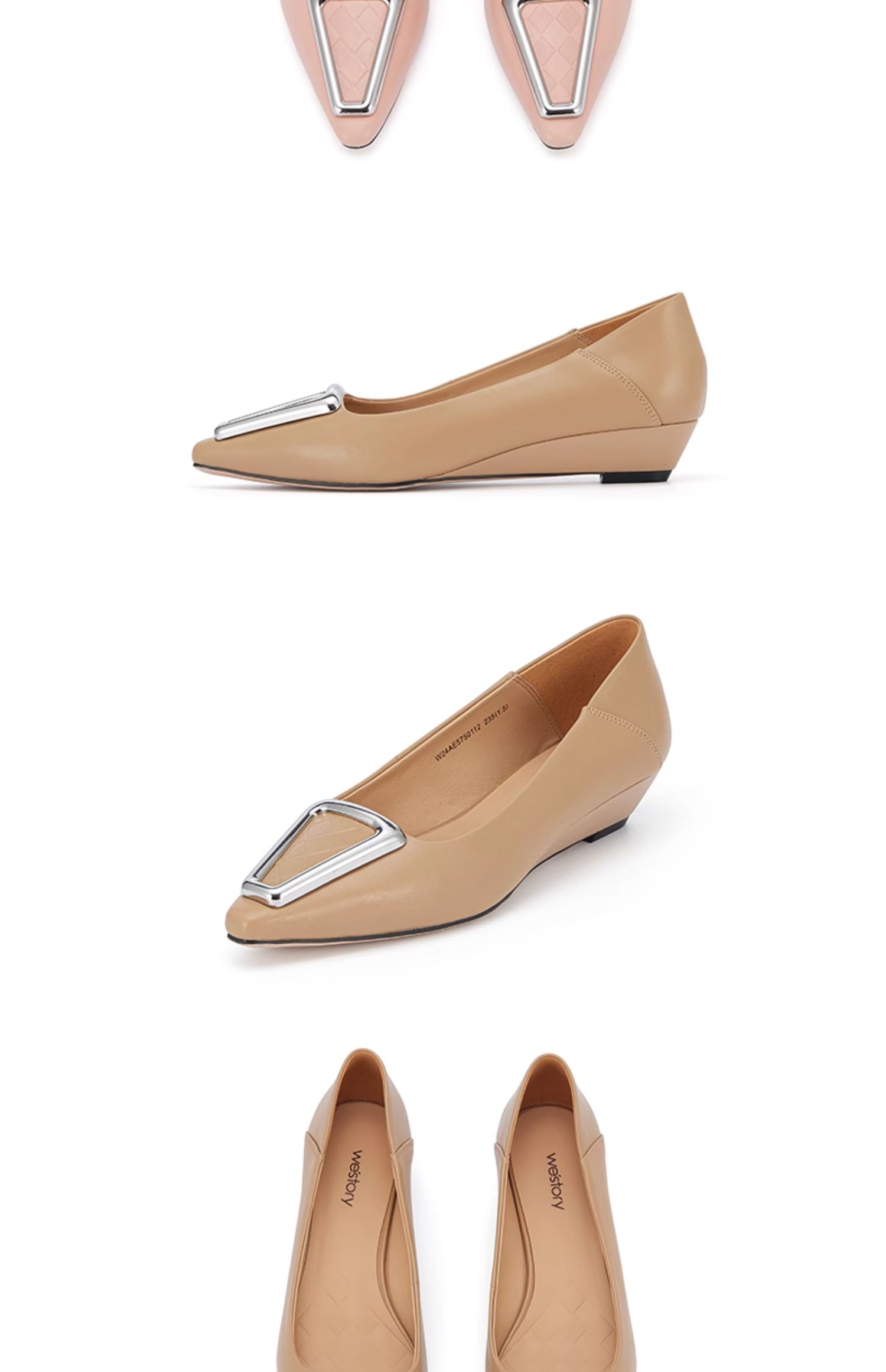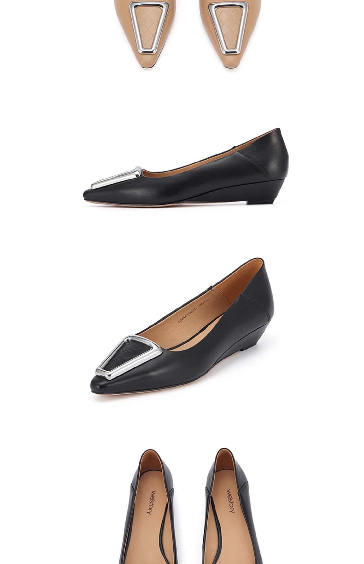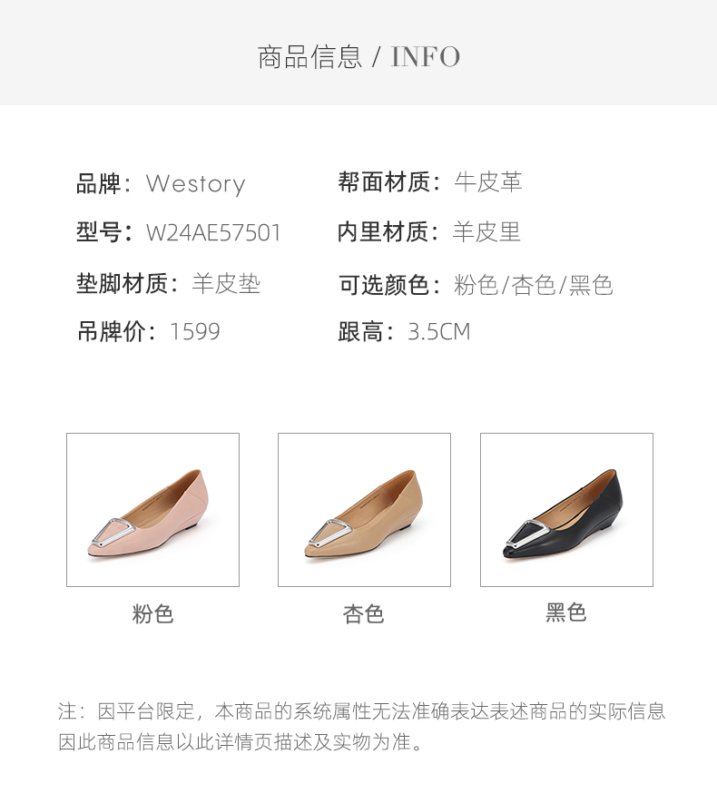 westory春季新款法式方扣平底浅口单鞋上班通勤瓢鞋女W24AE57501