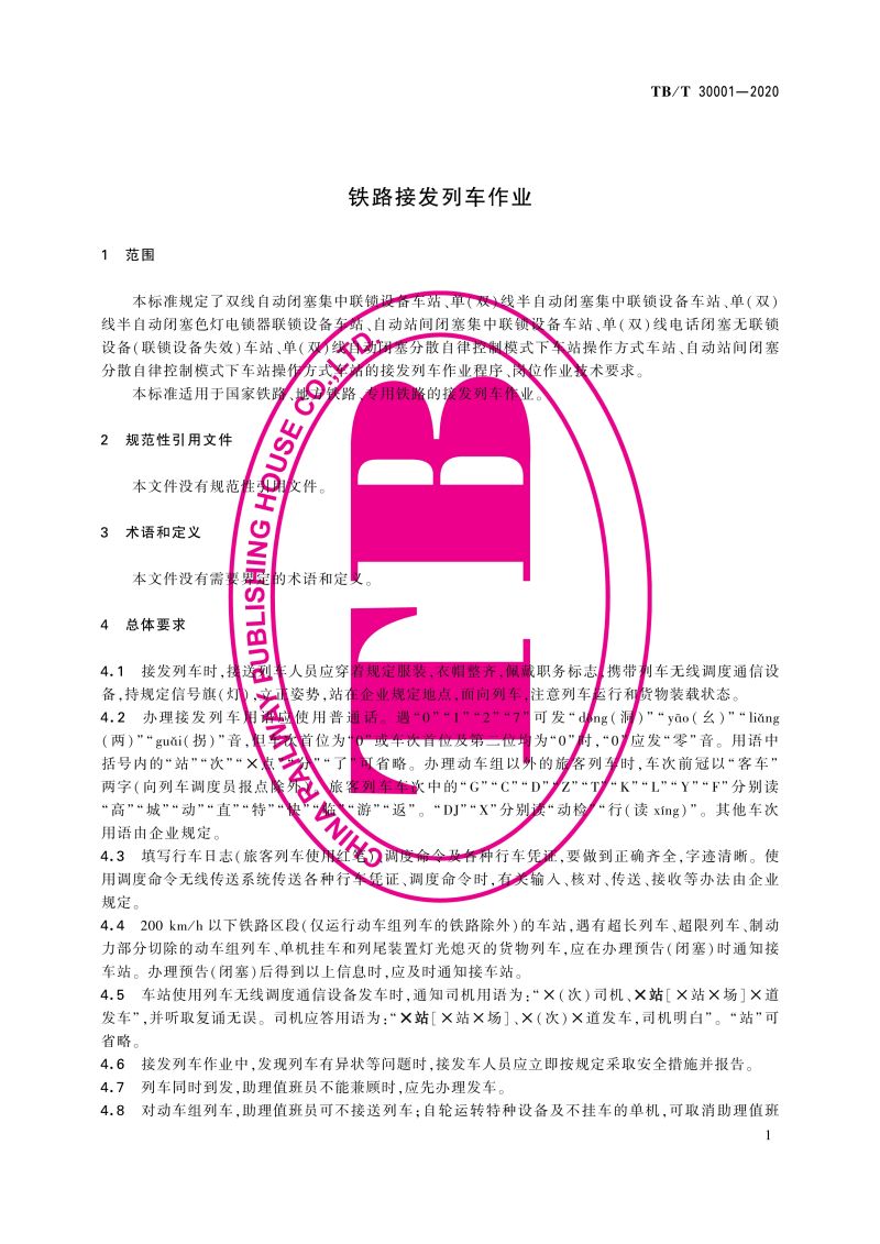 6227铁路接发列车作业 TB/T30001-2020 (32k)