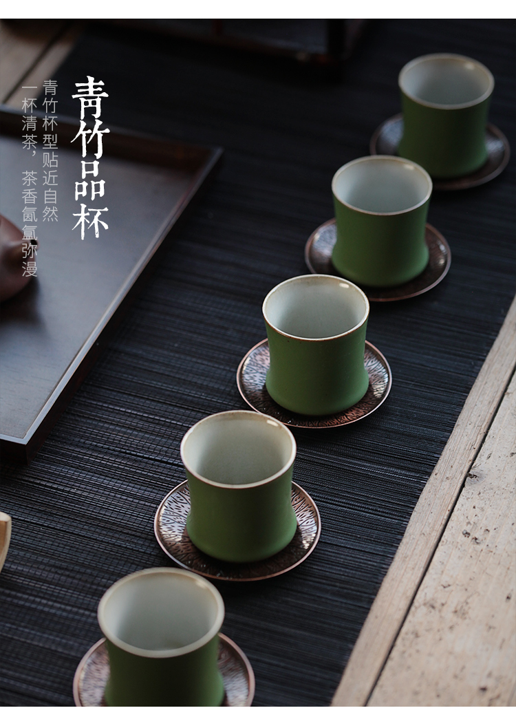 【茶杯/品茗杯】青竹品杯主人杯功夫茶杯陶瓷品茗杯小单杯手工杯垫套装品茶杯子