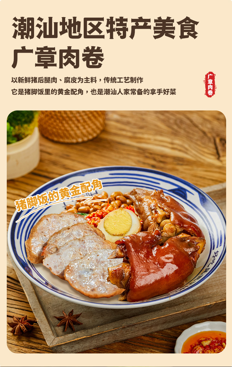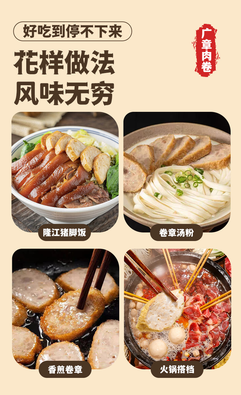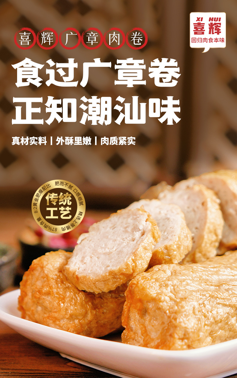 【分销】喜辉潮汕猪肉卷章500g/袋,看得见的真材实料——每片都能看到肉粒纹理!