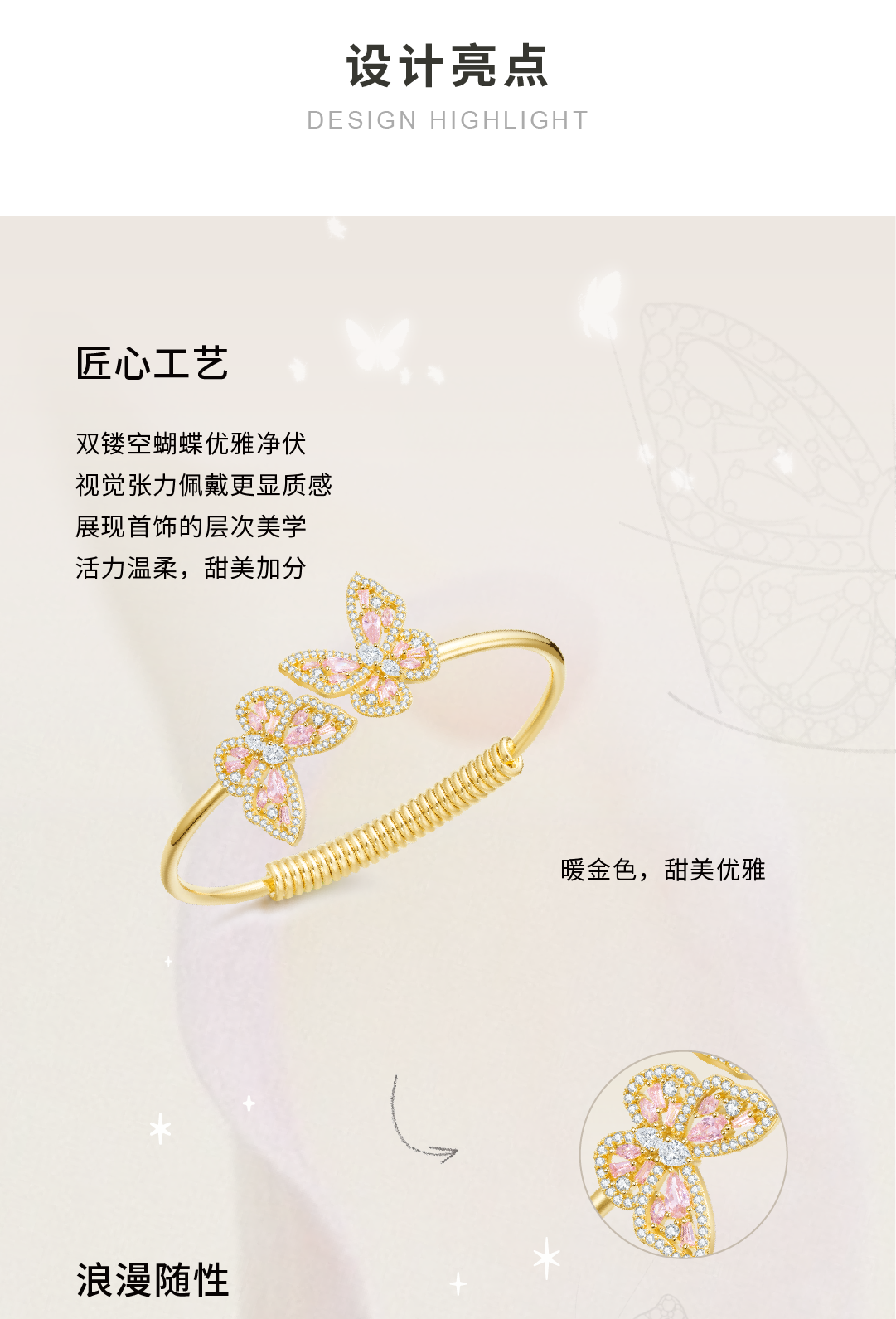 【月光蝴蝶】可开口蝴蝶手镯·金银双色