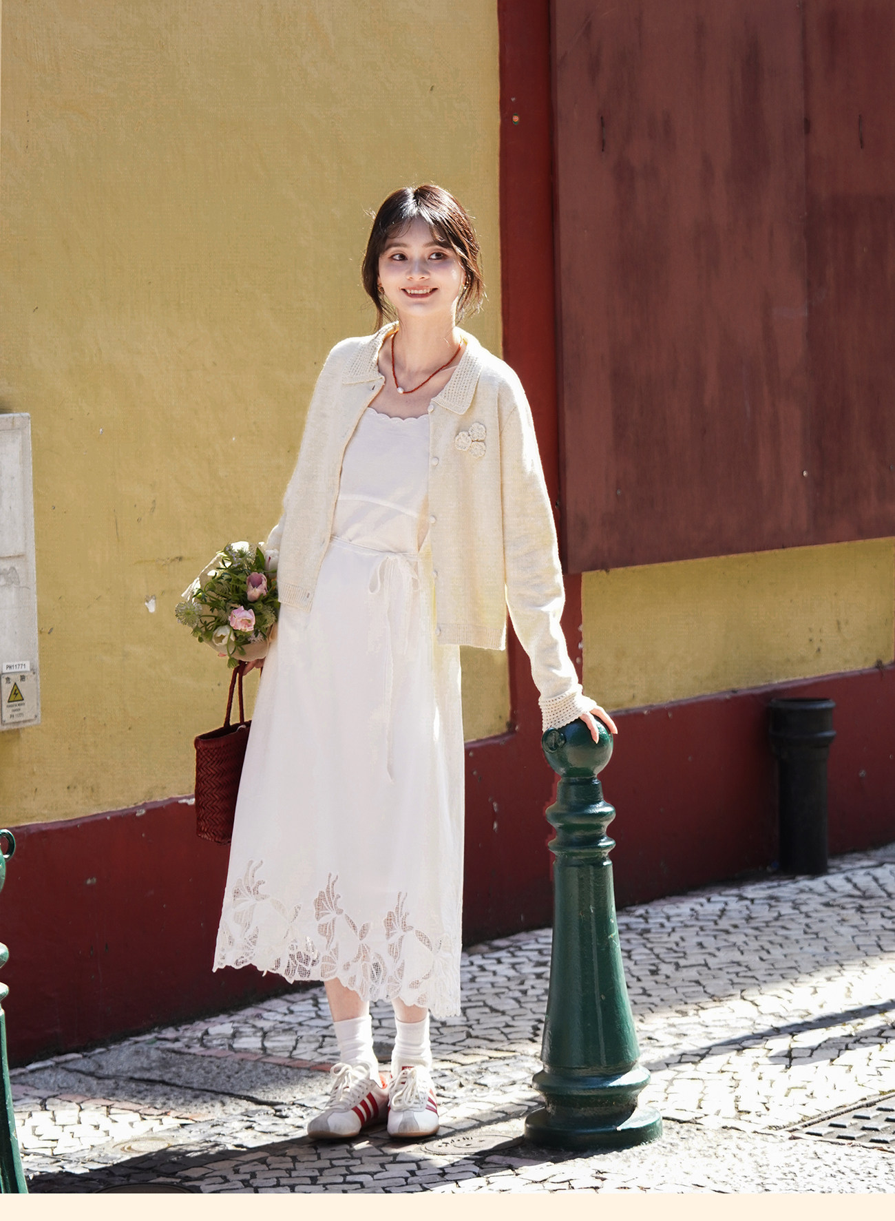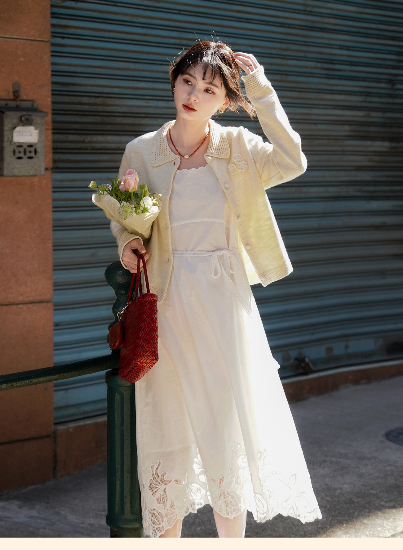 浮生八记/26A010/26A026/重工蕾丝花朵提花刺绣半裙吊带连衣裙