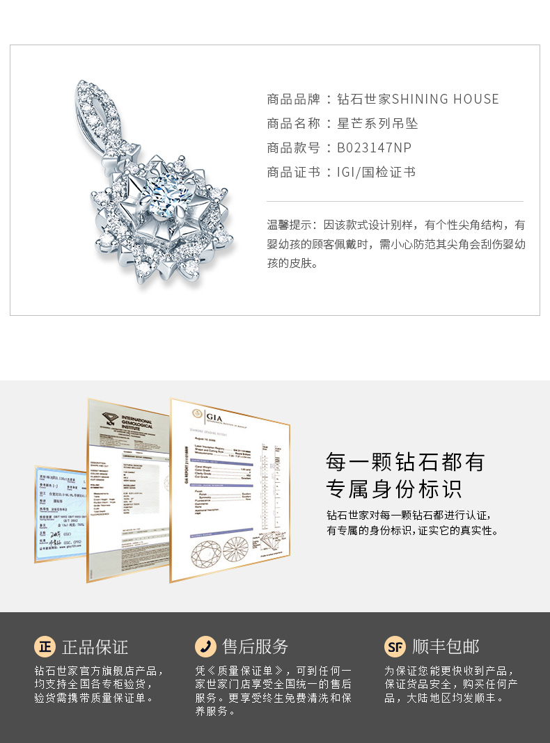 【极慕之星】【门店同款】钻石世家 18K金钻石吊坠 星芒系列钻石吊坠