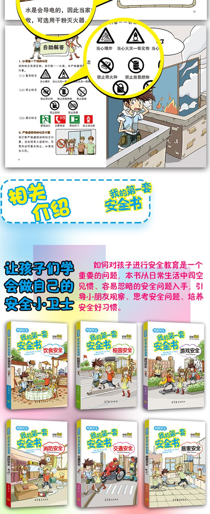 【优惠套装】我的第一套安全书 全6册 交通居家校园饮食游戏消防安全 青少年儿童幼儿安全教育书小学生幼儿公共场所安全6-9-12岁科普类书籍
