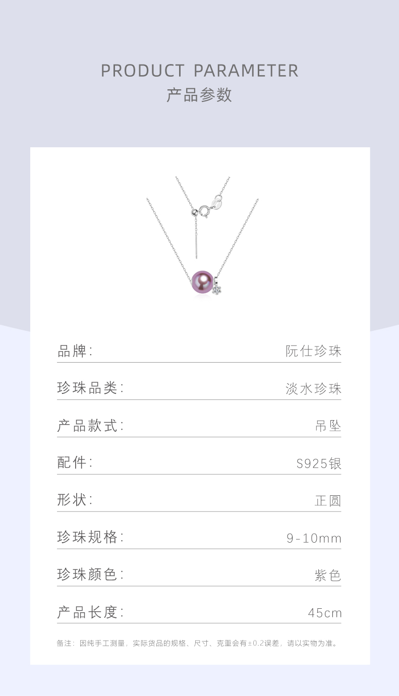 S925银淡水珍珠链牌 9-10mm 正圆 微瑕 极强光