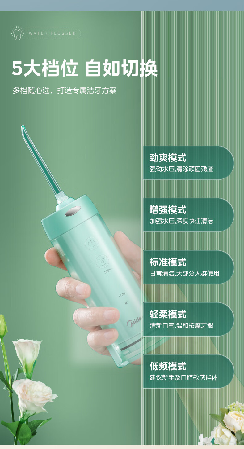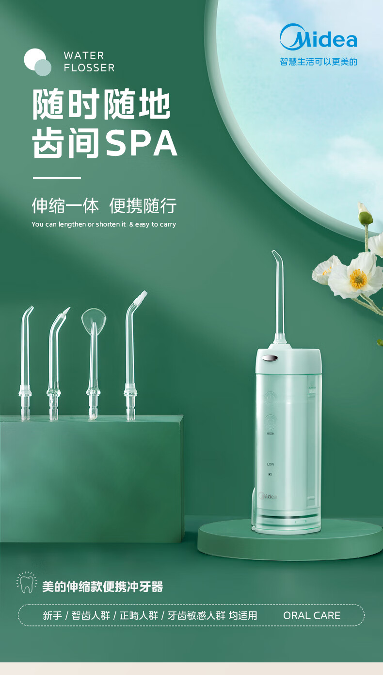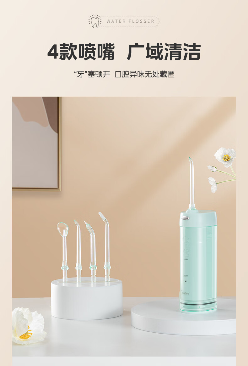 美的(Midea)MC-BL0102 冲牙器便携式 洗牙器水牙线洁牙器 电动洗牙神器 礼物送男朋友女朋友家用洁牙仪