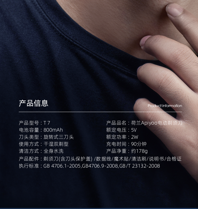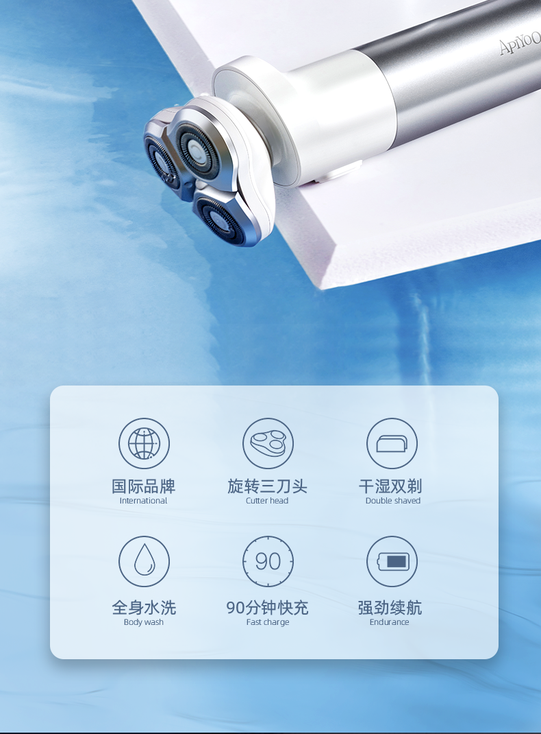 apiyoo艾优剃须刀电动刮胡刀男士全身水洗胡须刀胡须型男三刀头【艾优】