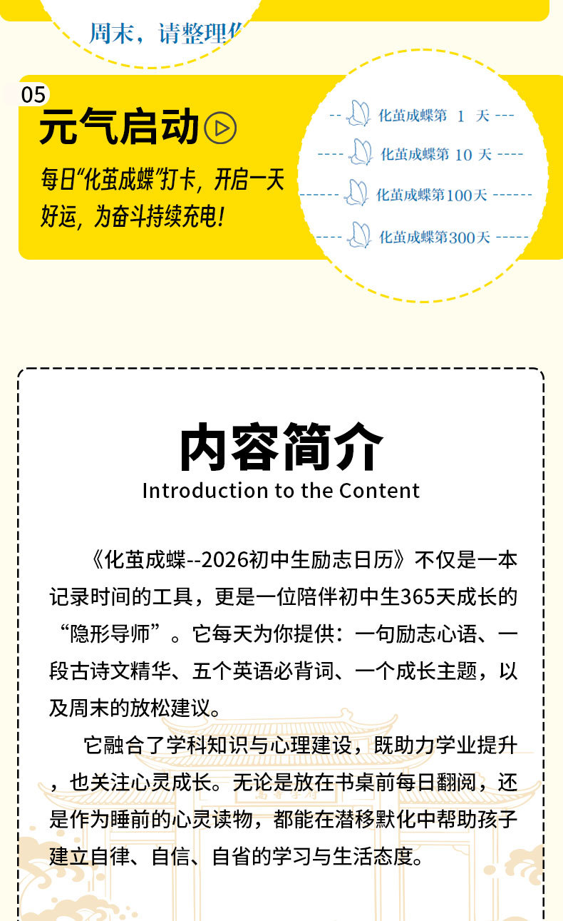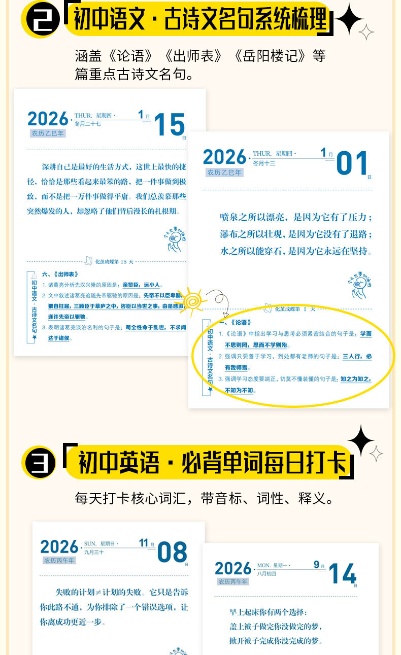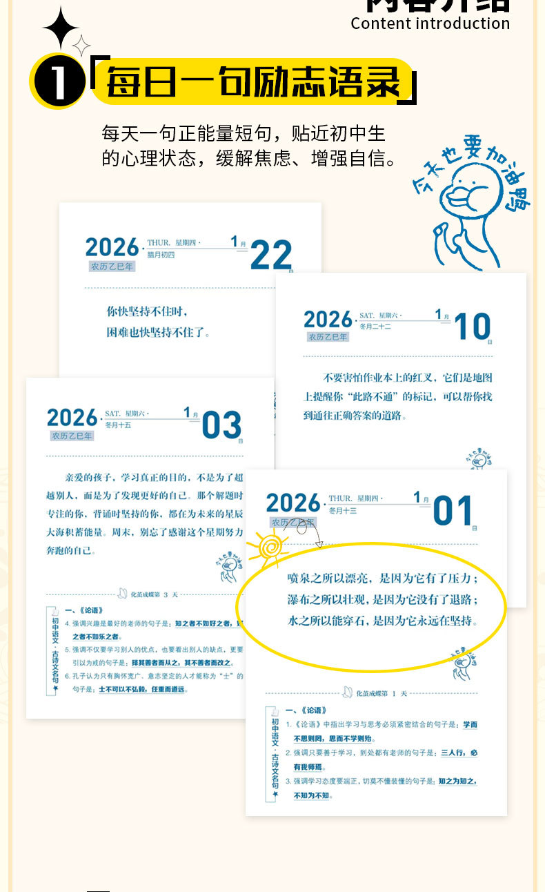 【化茧成蝶 初中生励志日历】2026年新款台历 每日一句励志语录日历