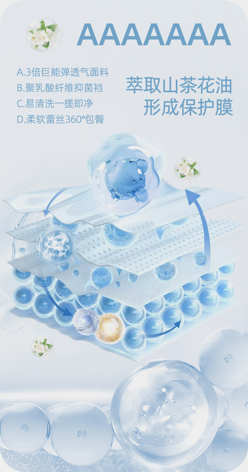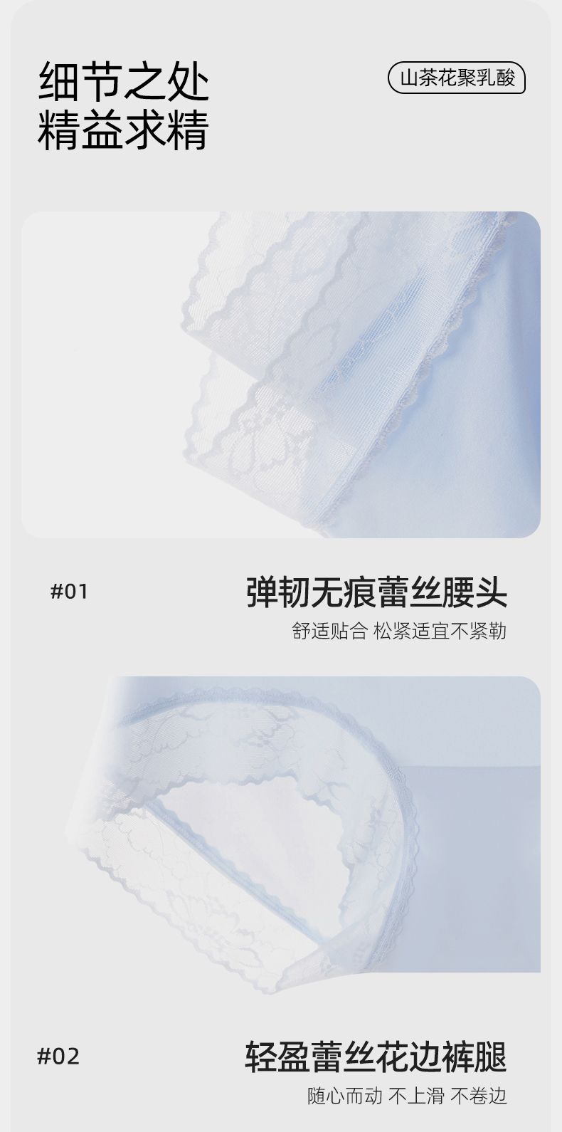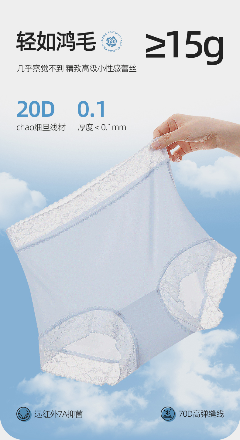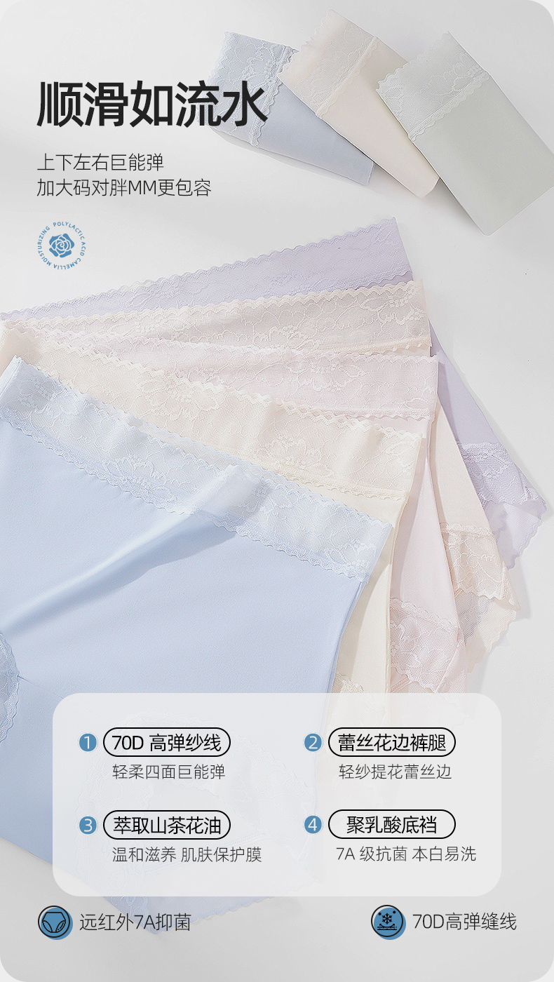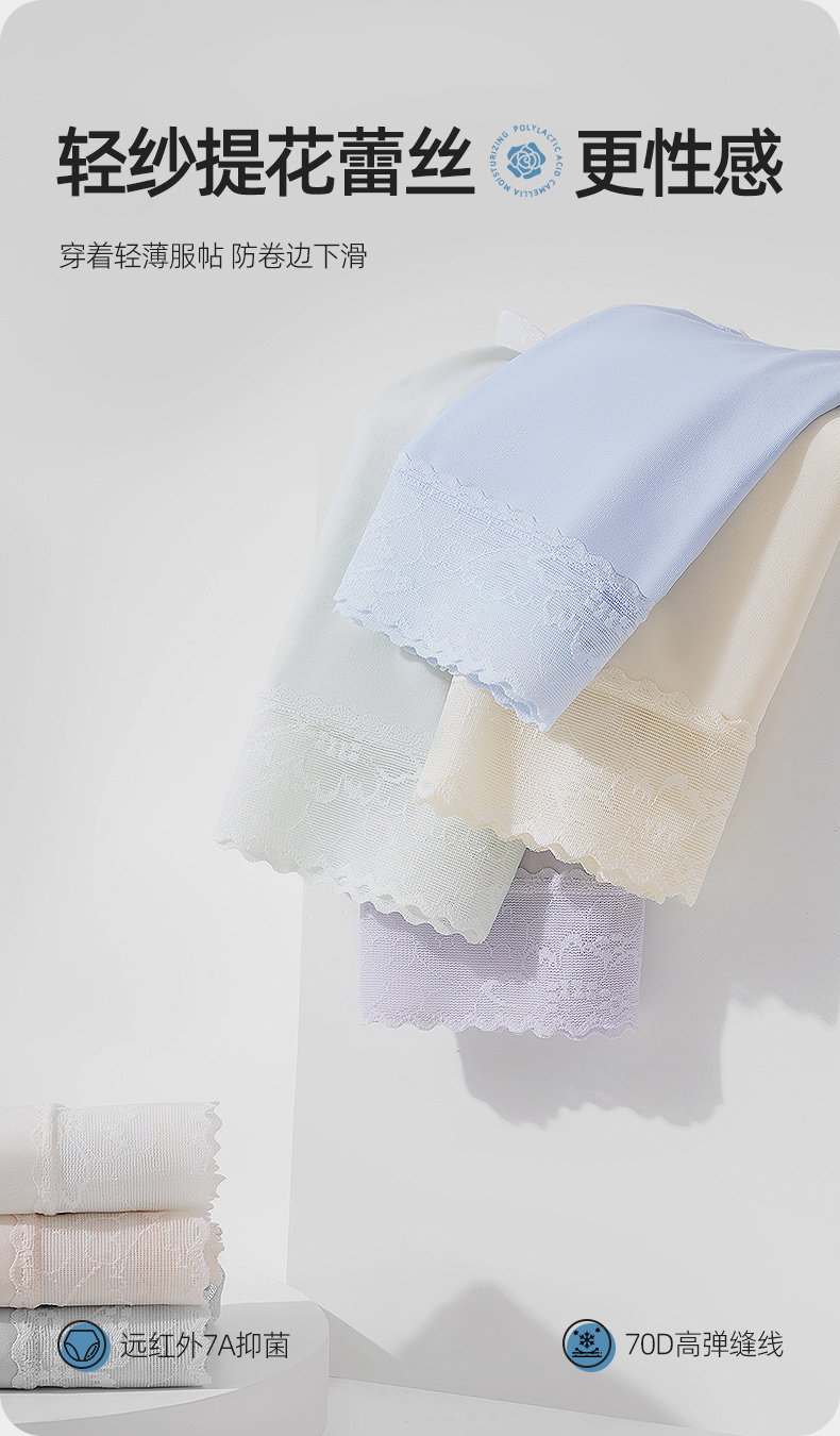 【特妮娜 7A山茶花空调内裤】A类面料 轻纱提花蕾丝 穿着轻薄服帖防卷边下滑 面料独特山茶花油保护膜技术 温和修复 适应各种敏感肌肤 7A级聚乳酸纤维裆部