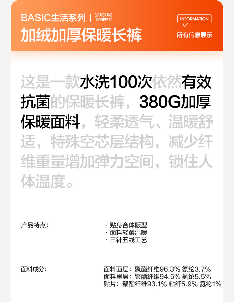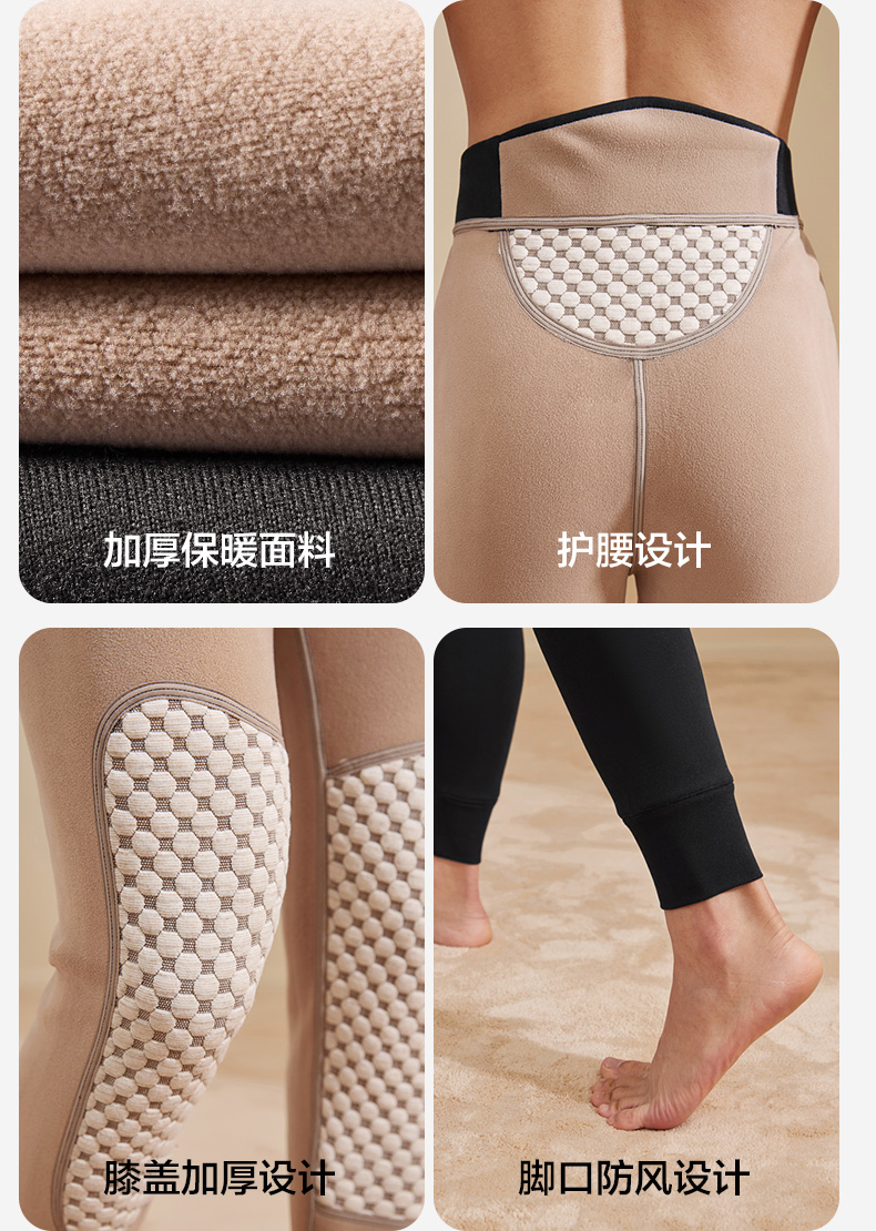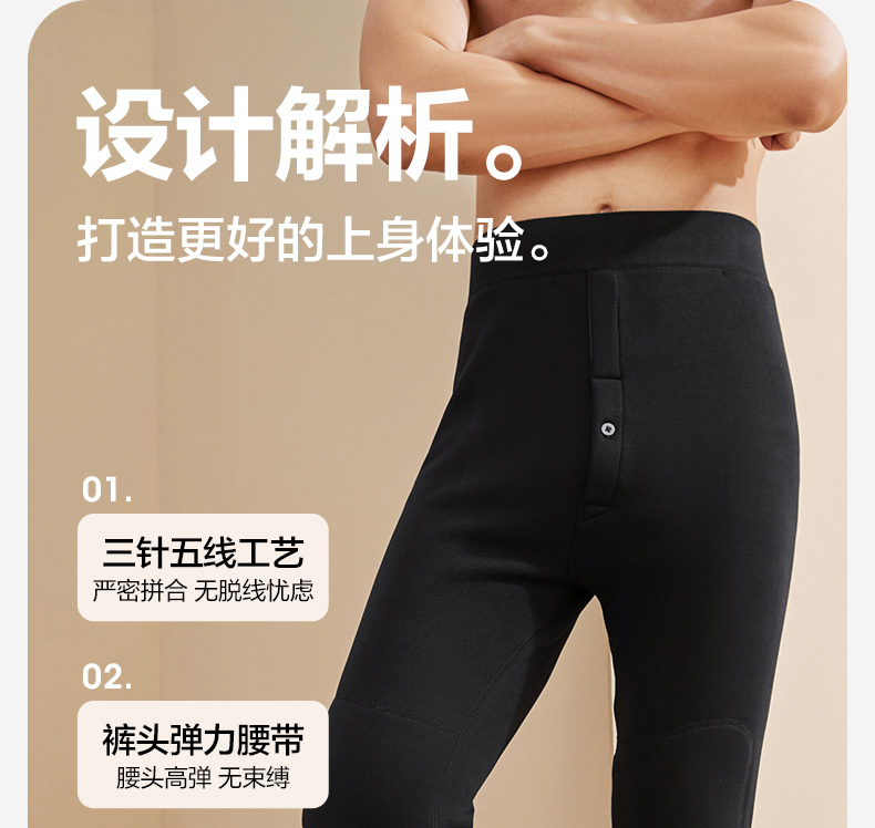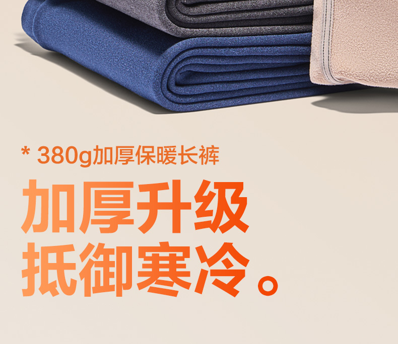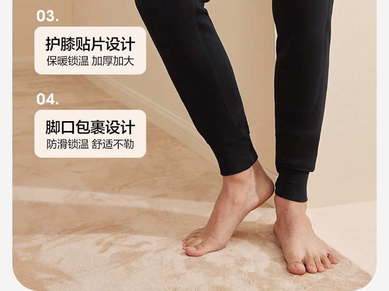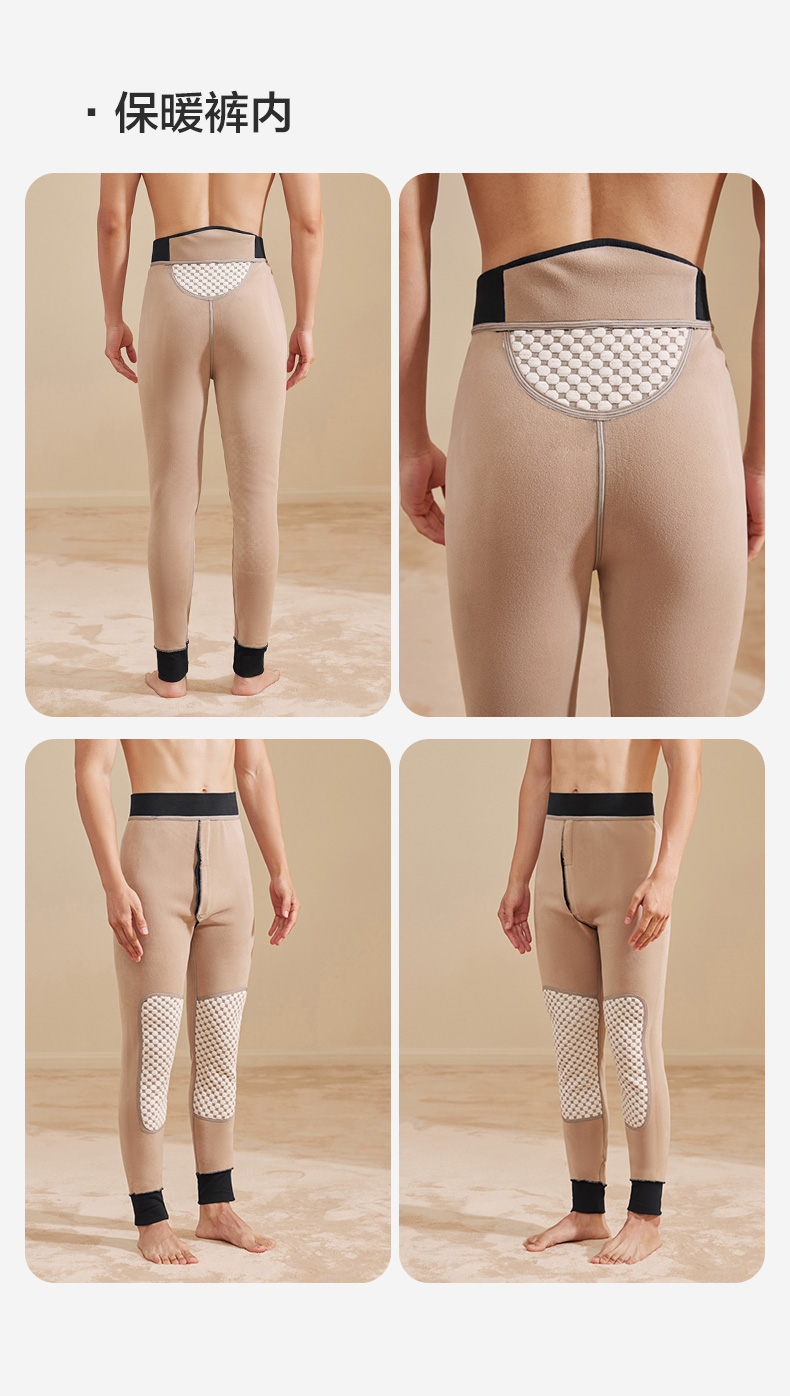 柒牌男士保暖裤男加绒加厚5A抗菌远红外发热护膝贴片男款打底秋裤 127F70510