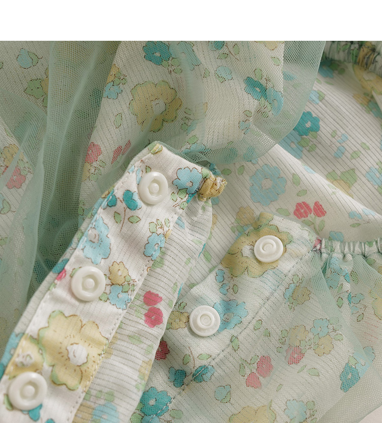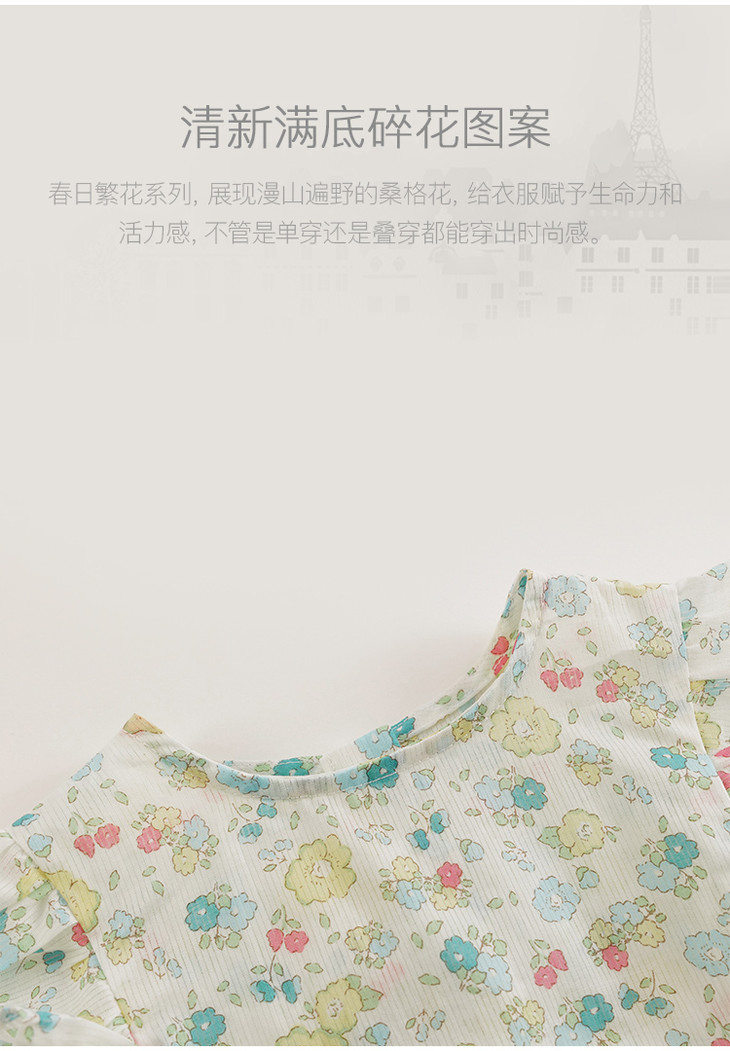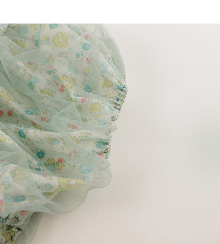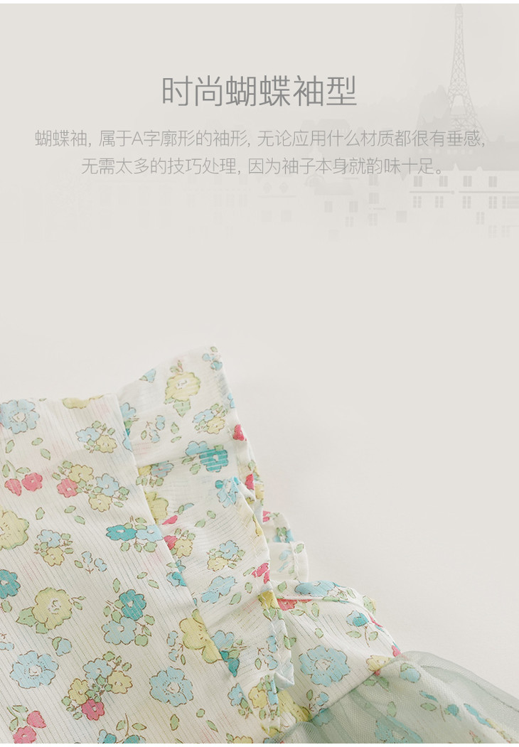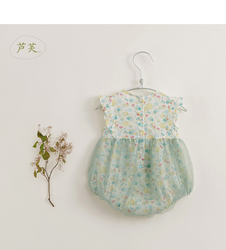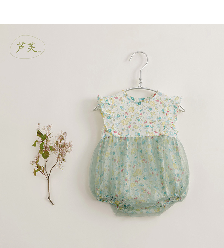 【马克珍妮 芦芙】夏装 女宝宝碎花蝴蝶袖网纱连体衣230500