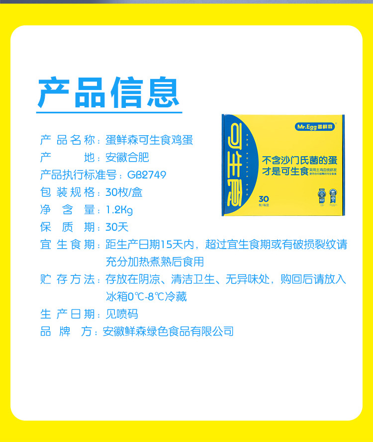 【疯狂星期五】蛋鲜森 可生食鸡蛋系列 30枚/60枚