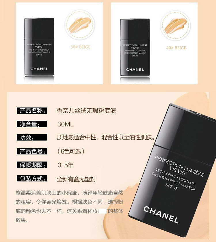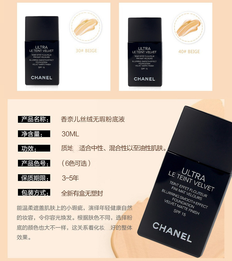 CHANEL/香奈儿 丝绒无瑕粉底液30ml (4色可选)