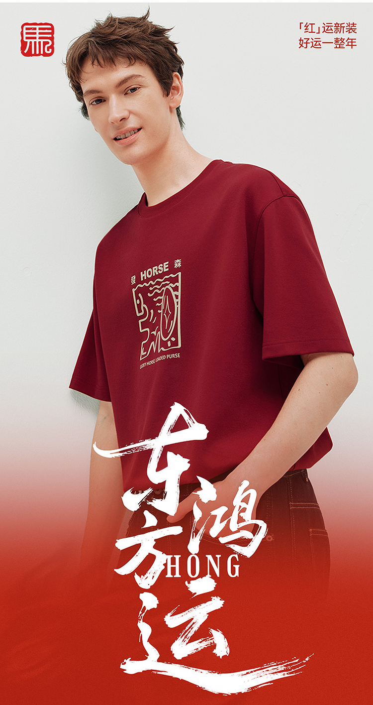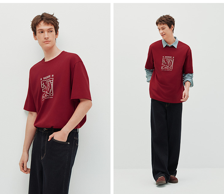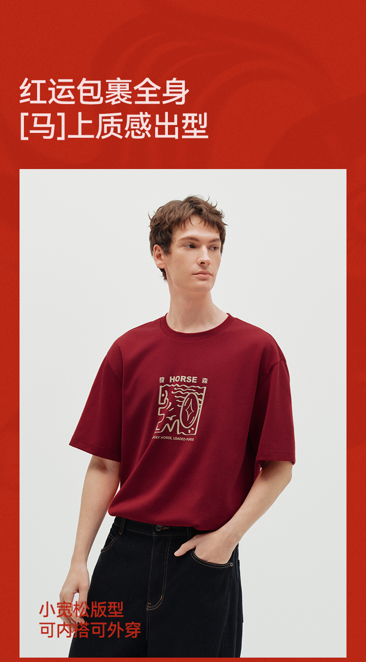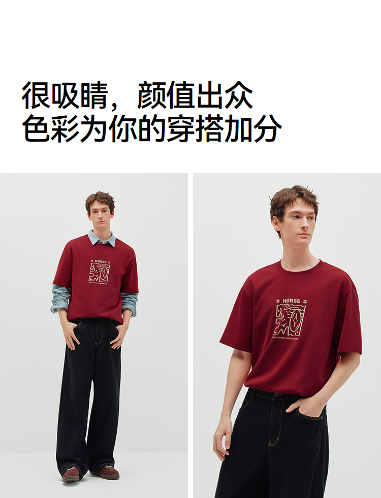 商场同款|森马国博衍艺联名系列短袖T恤男肌理工艺情侣装2026新款