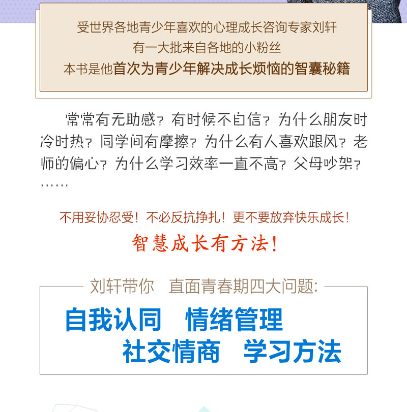 1哈佛心理学者、青少年心理成长咨询专家刘轩为青少年成长量身定制的心理自助读本