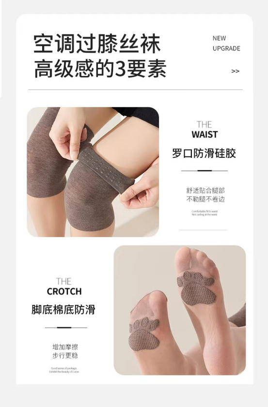 👍这款【空调过膝袜】你直接闭眼冲❗️夏季空调房必备!! 平时膝盖冷,有需要穿轻薄透气的压力袜 这款丝袜保护膝关节的同时~ 仿佛一层隐形美肤的粉底 穿上有效提亮腿部肤色 隐形心机瘦腿袜,简直爱住了!