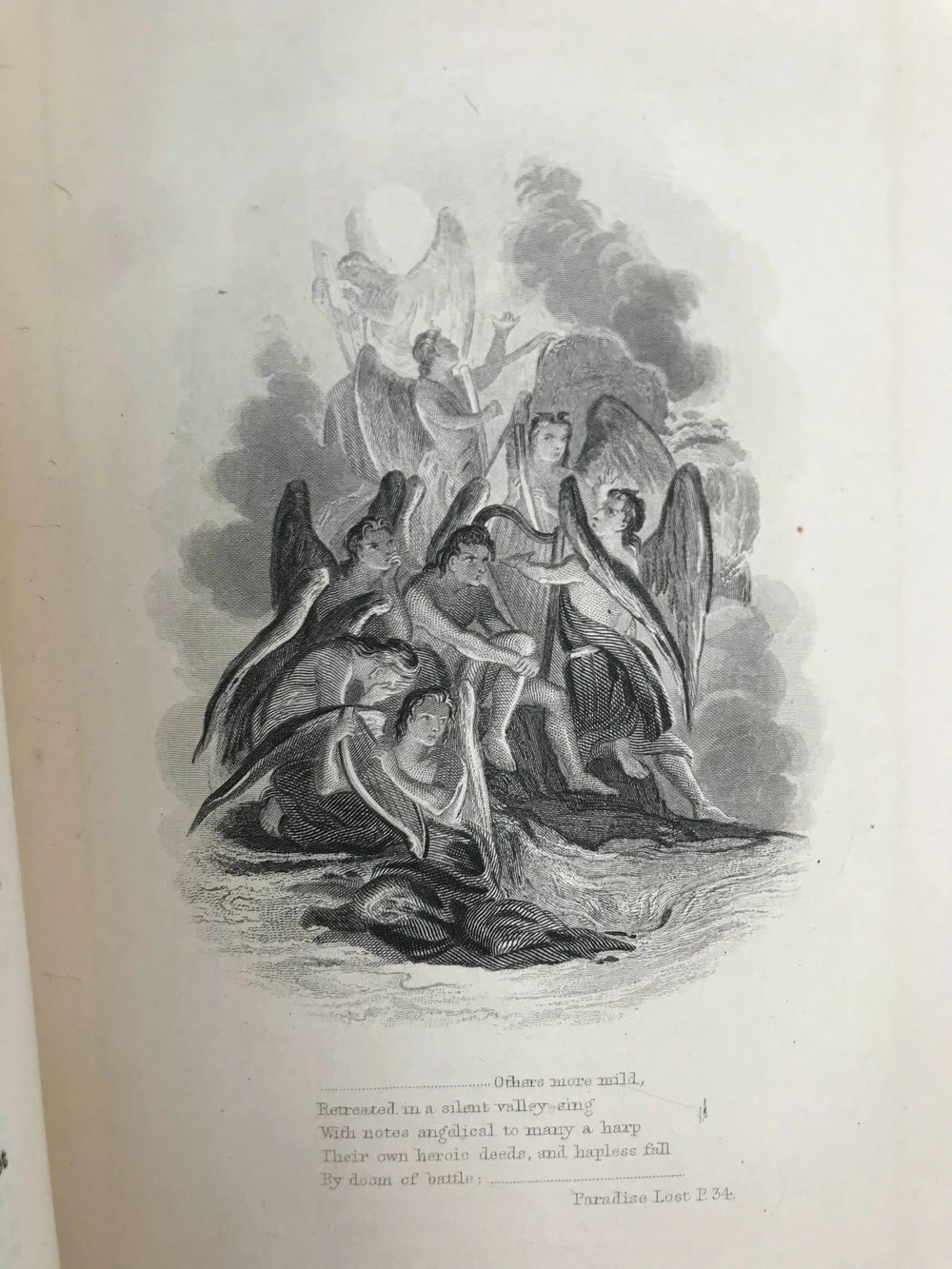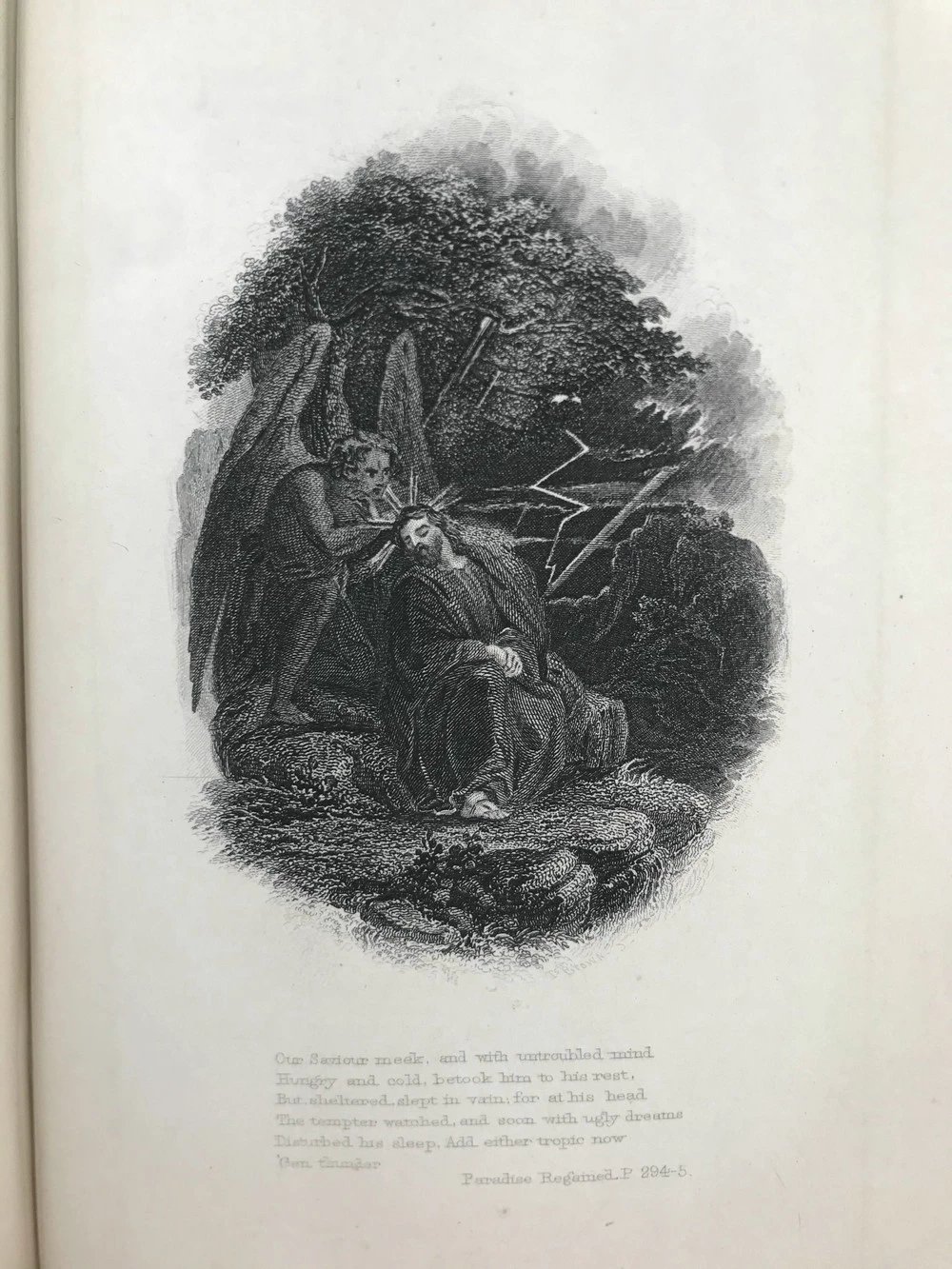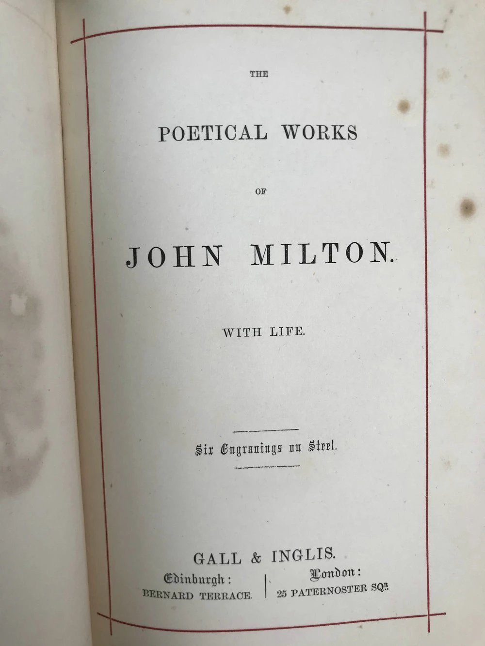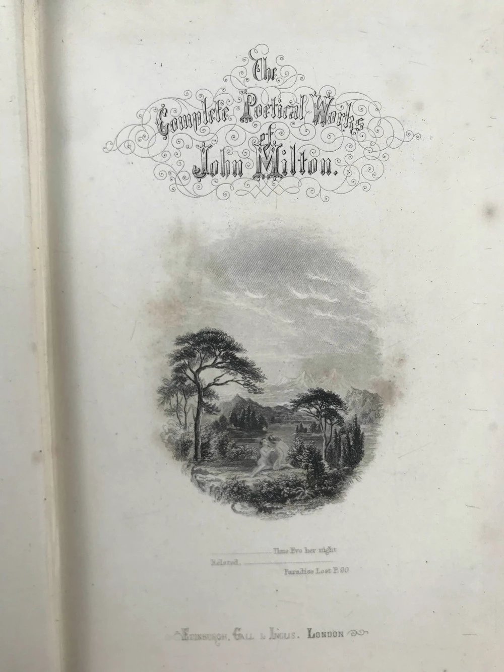 约19世纪后期 弥尔顿诗集 6幅钢版画插图 漆布精装32开