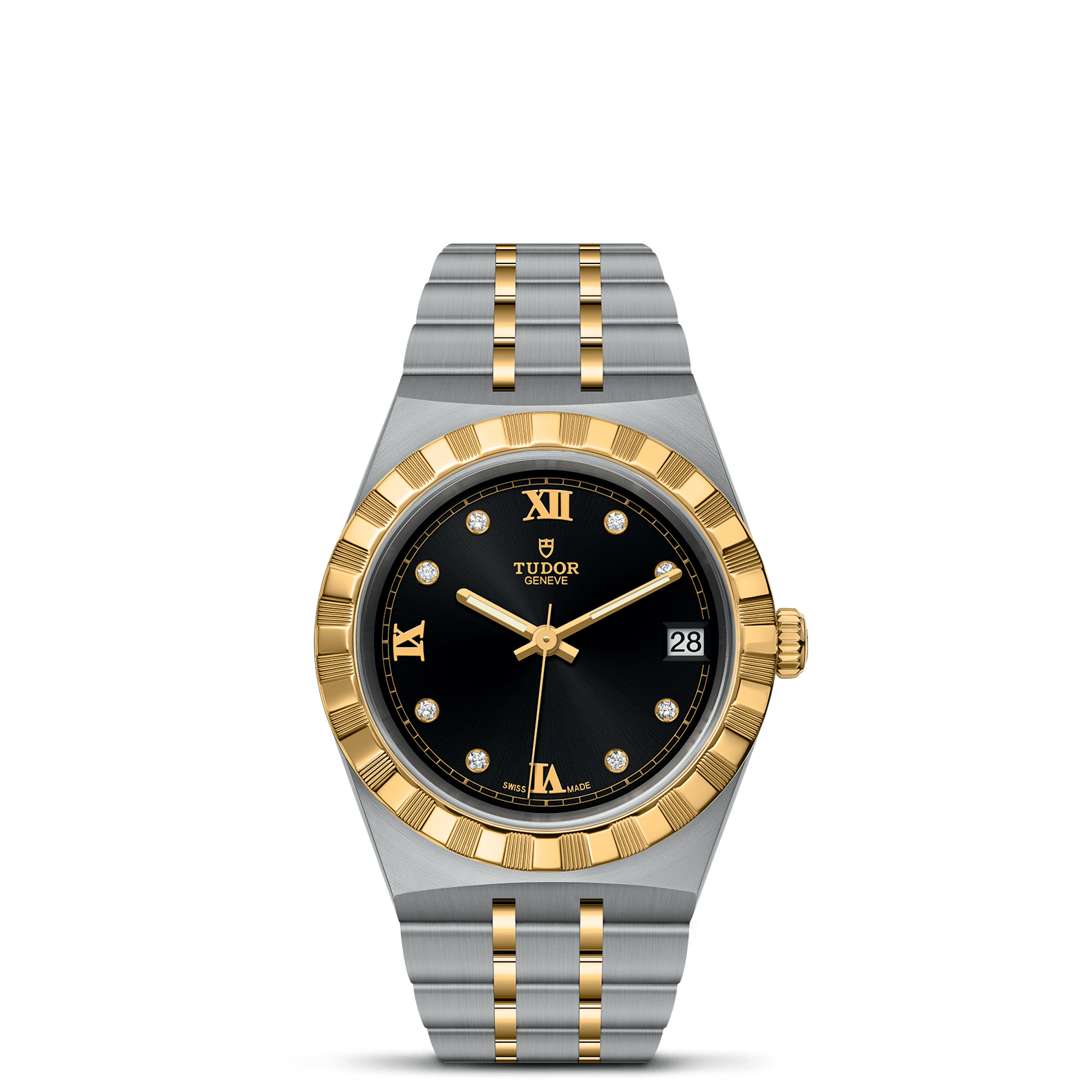 旋入式上链錶冠,饰以帝舵表标志;精钢覆有0.1毫米18K黄金薄层