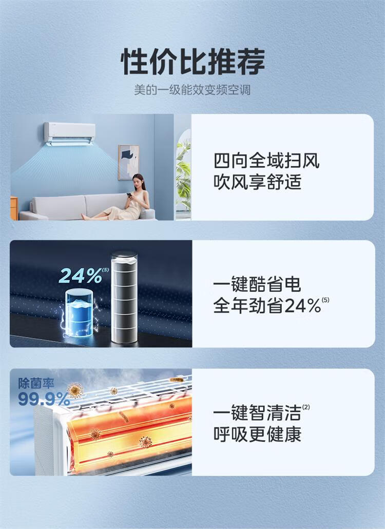 国补到手 2399 元 美的京绽Pro 1.5匹挂机 变频冷暖 新一级变频 全域扫风 一键酷省电 一键智清洁 app操控壁挂式空调 KFR-35GW/MJ1P