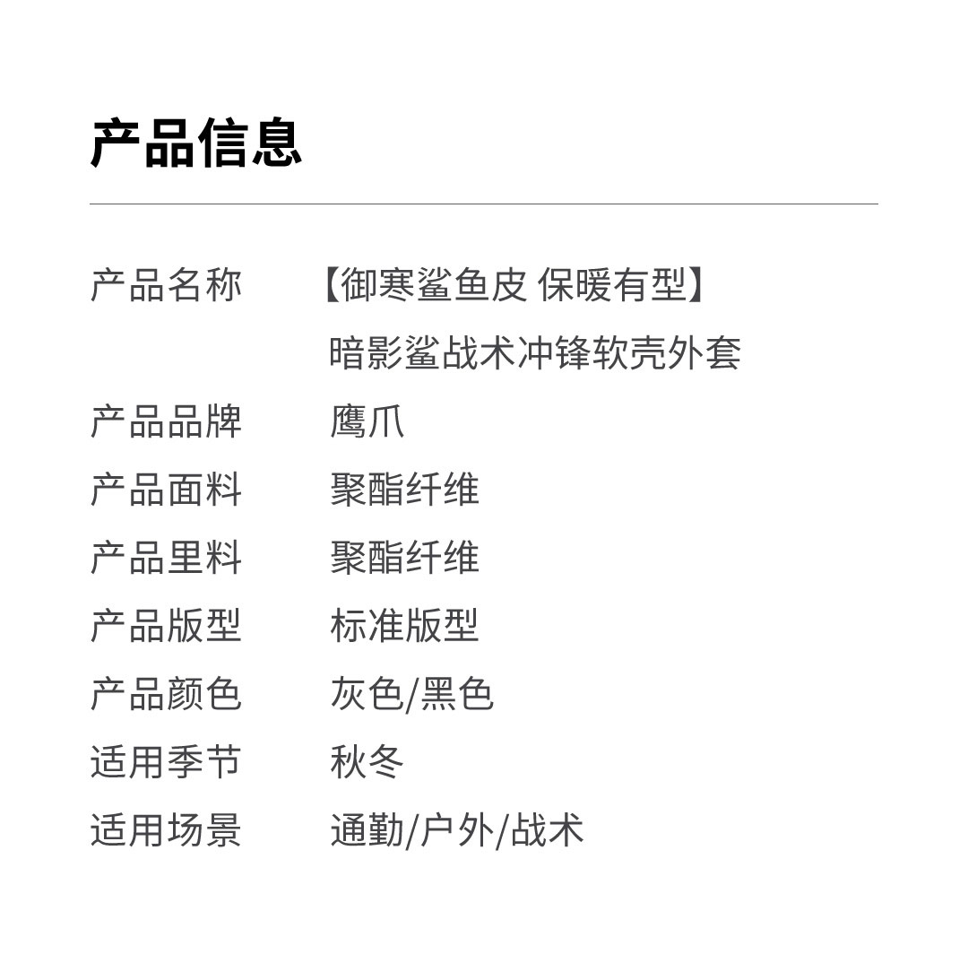鹰爪2022秋冬基础软壳暗影鲨系列套装 上衣裤子
