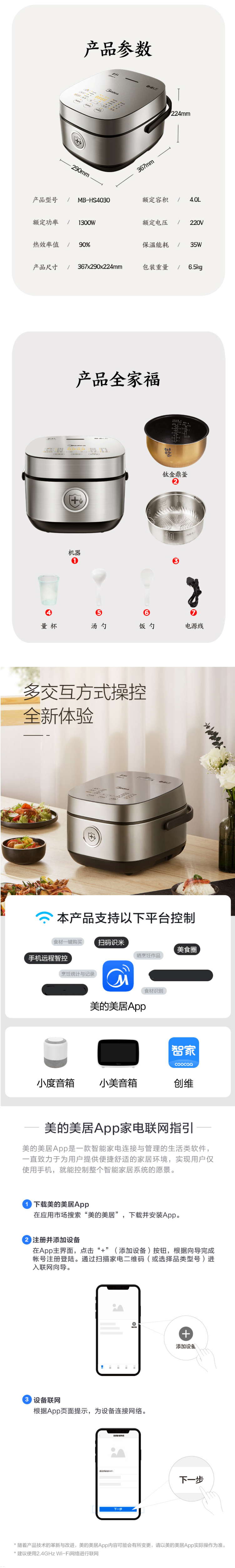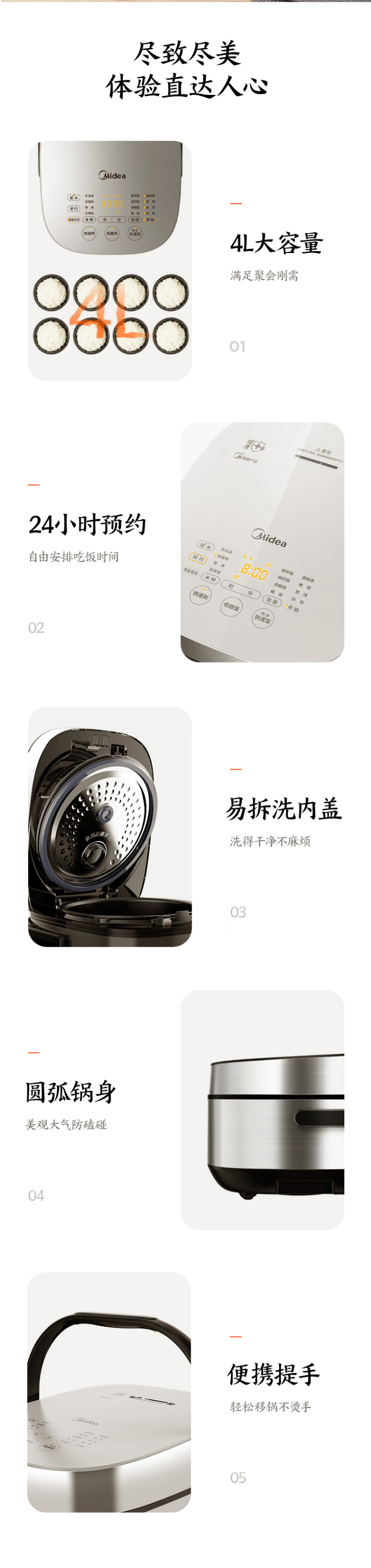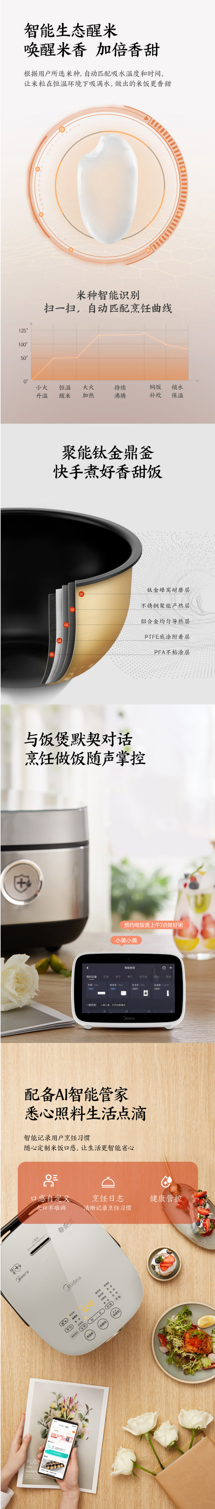 美的Midea(509729)MB-HS4030电饭煲IH电饭锅煲汤煮粥柴火饭4升沥米米汤粥定时预约微压稀饭焖香智能