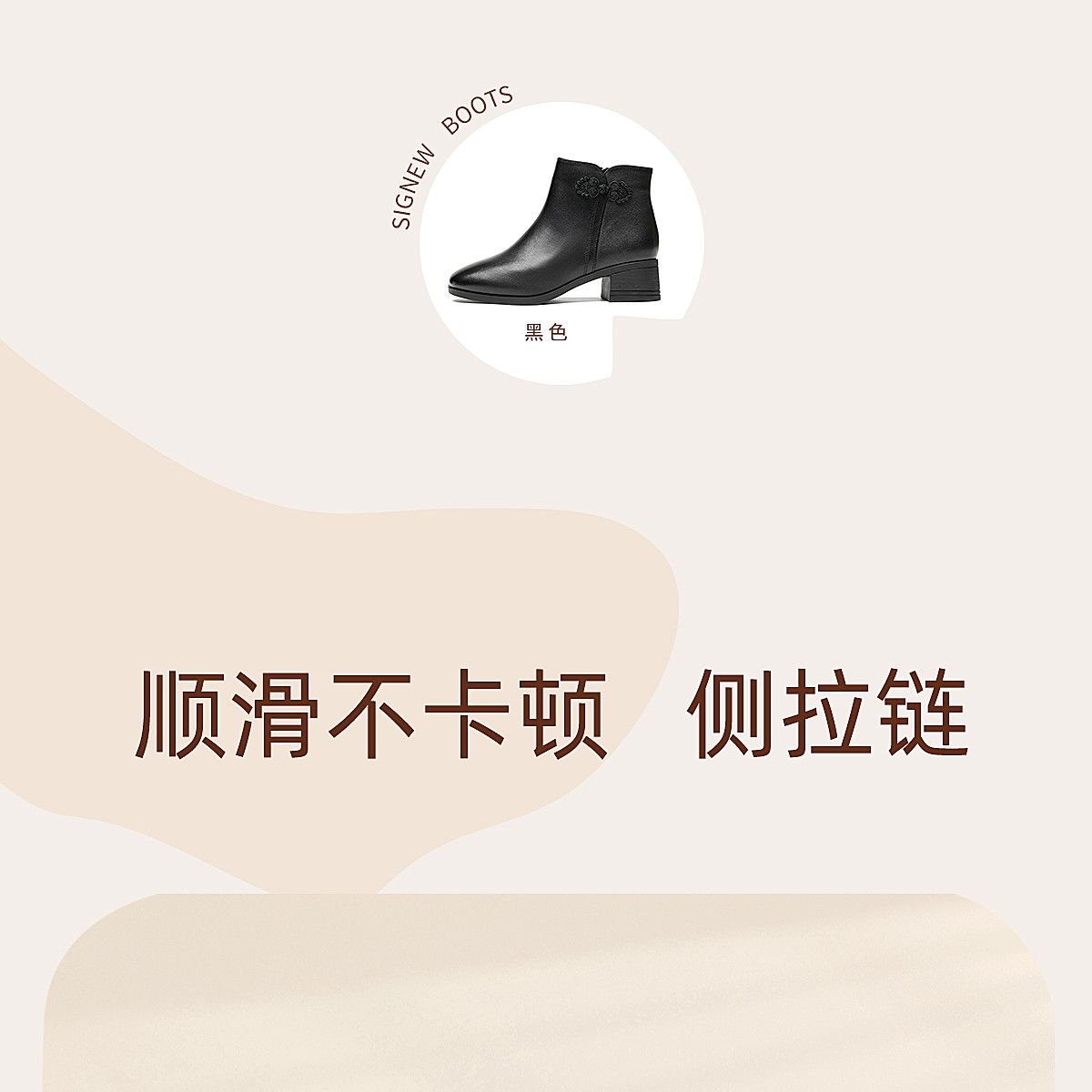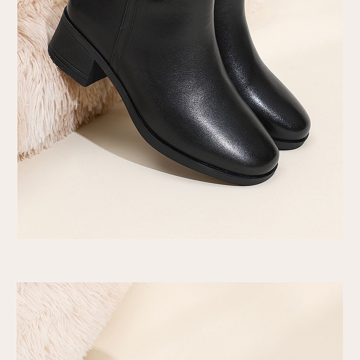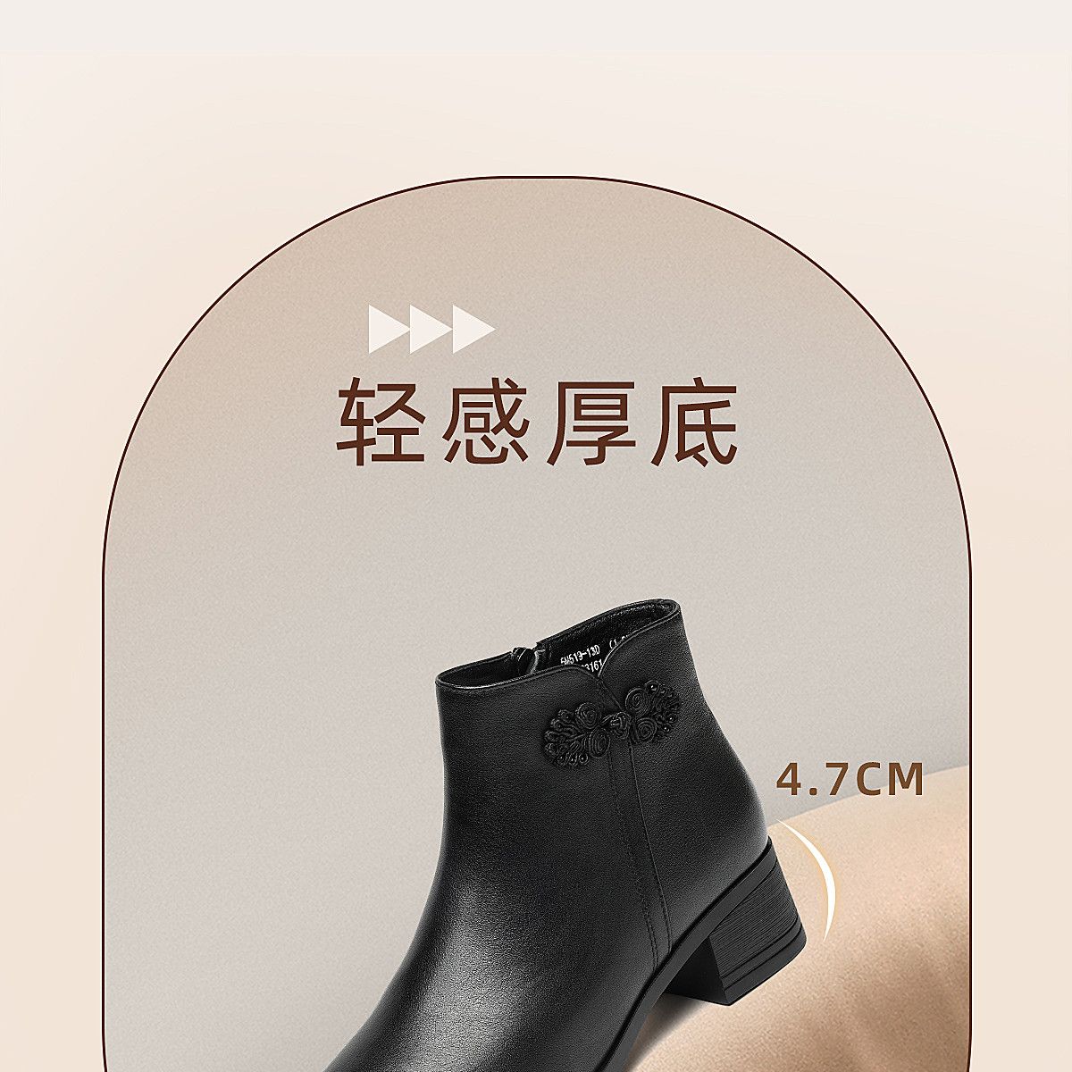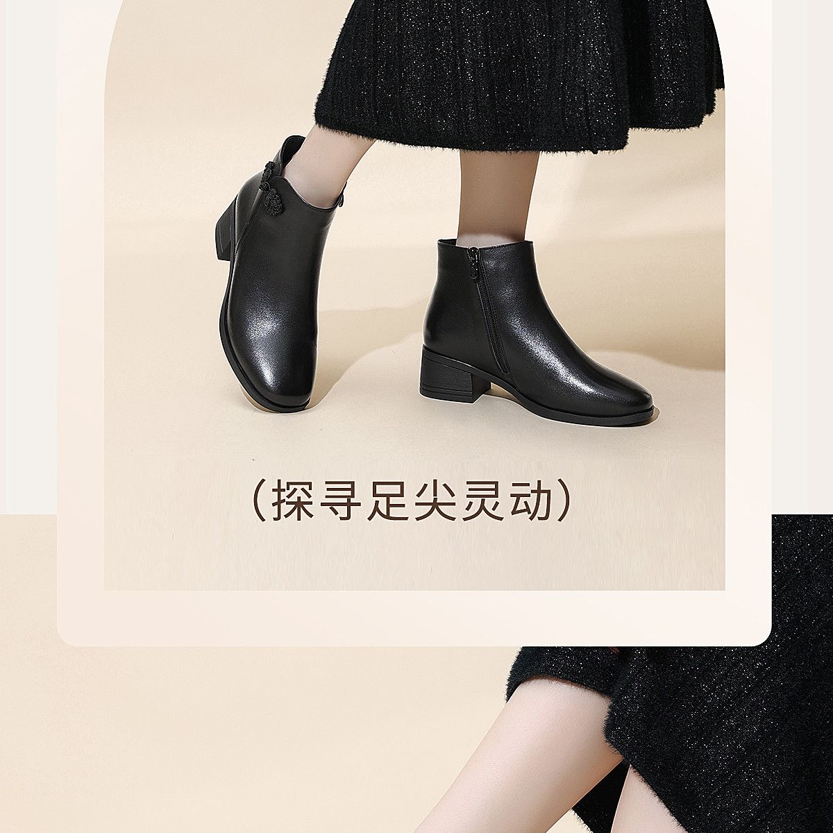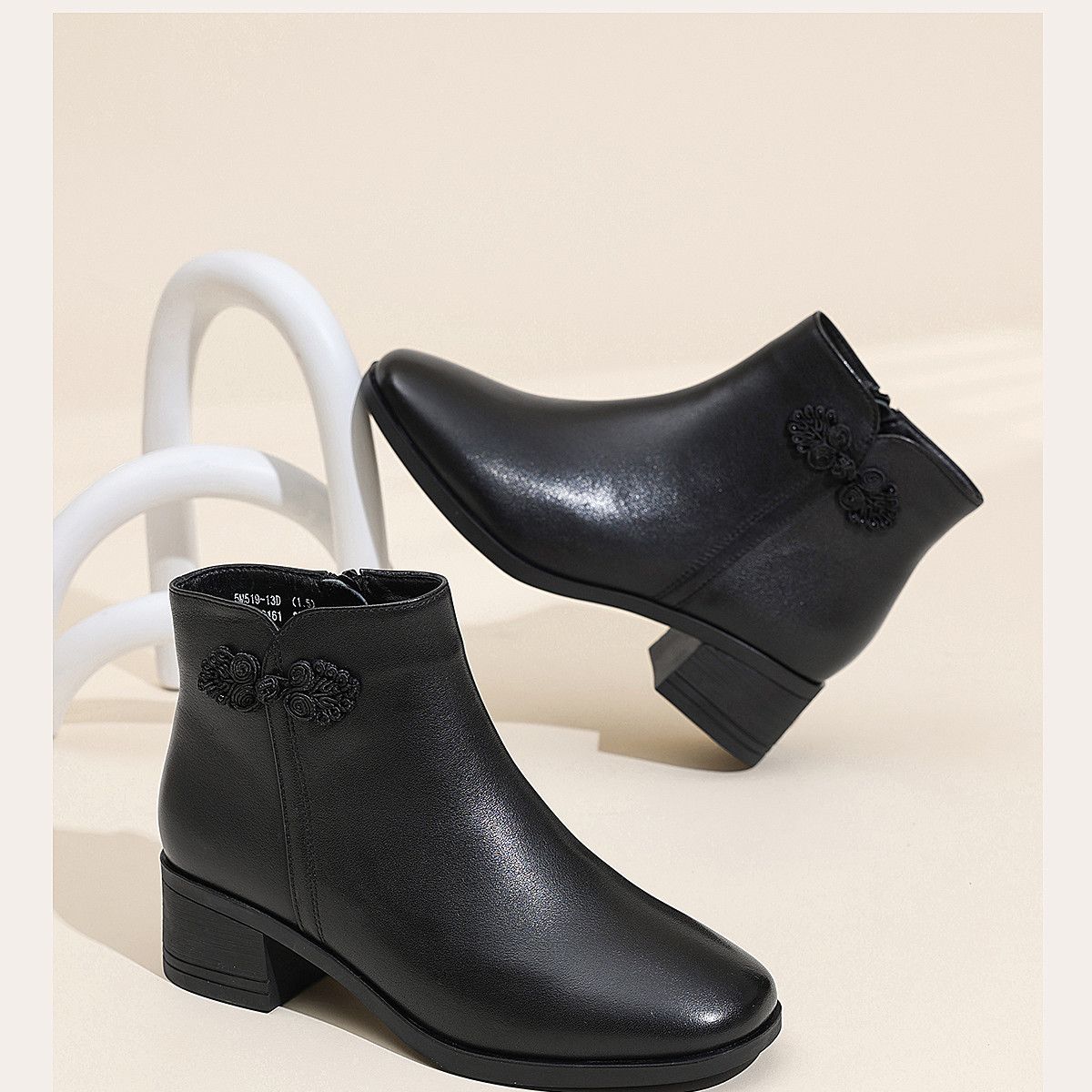 信诺真皮妈妈短靴粗跟靴子女2025冬季新款中老年加绒保暖棉鞋皮鞋5M519-13D