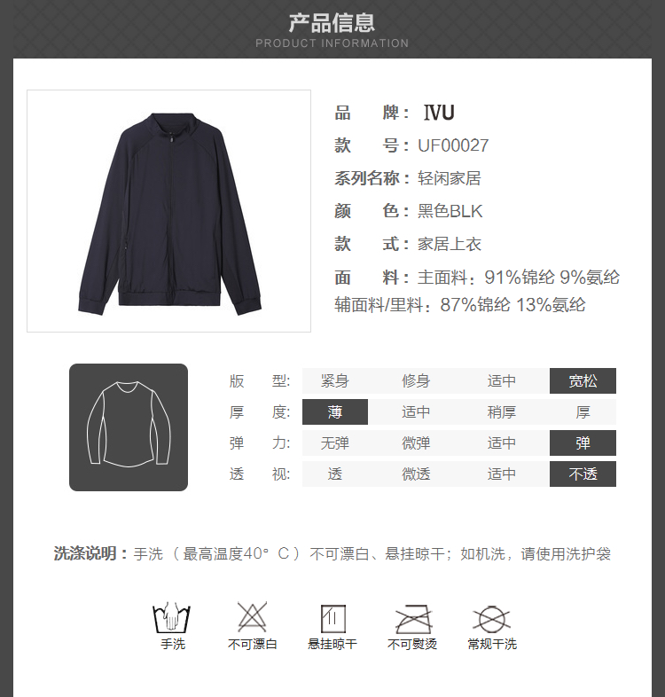 6F IVU 秋季薄款立领拉链运动夹克外套男士家居上衣