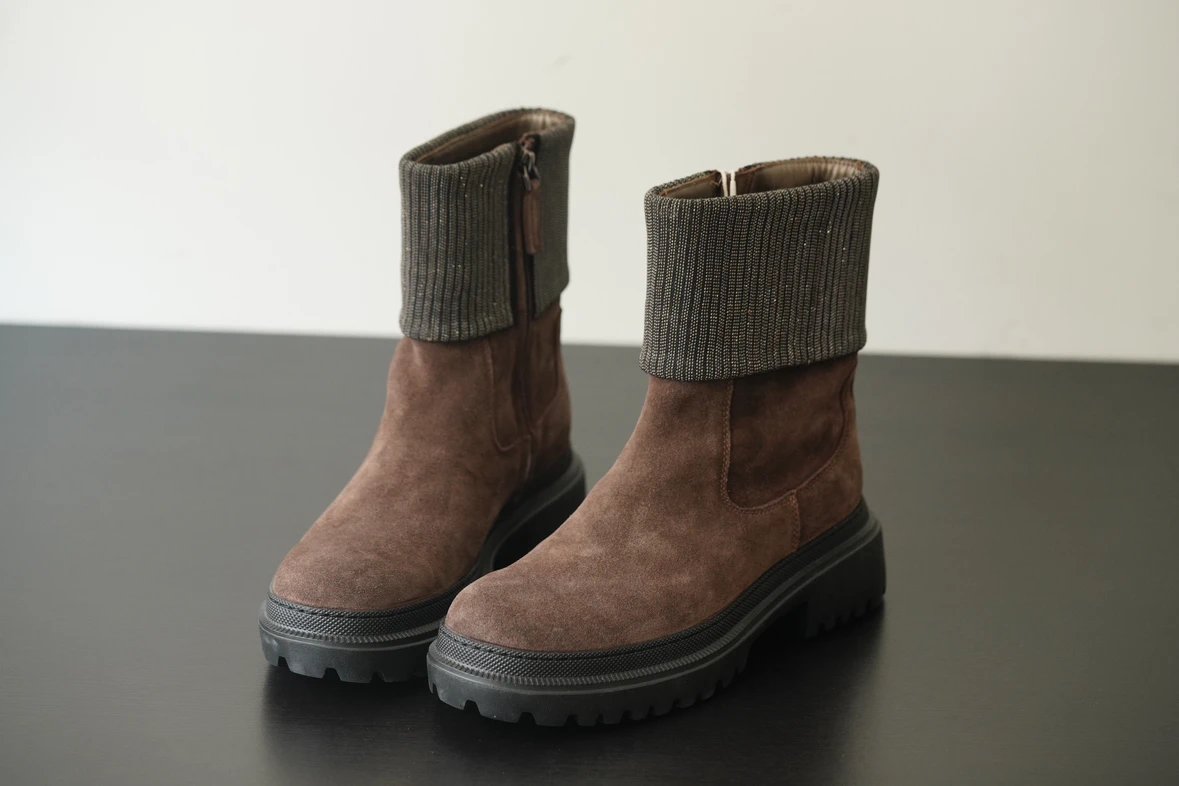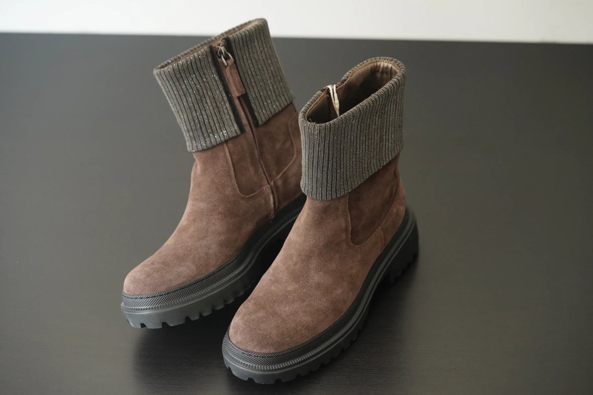 重磅渠道 bc钢珠翻边马丁靴 手工钉珠 胎牛反绒 老钱风 拉链短靴