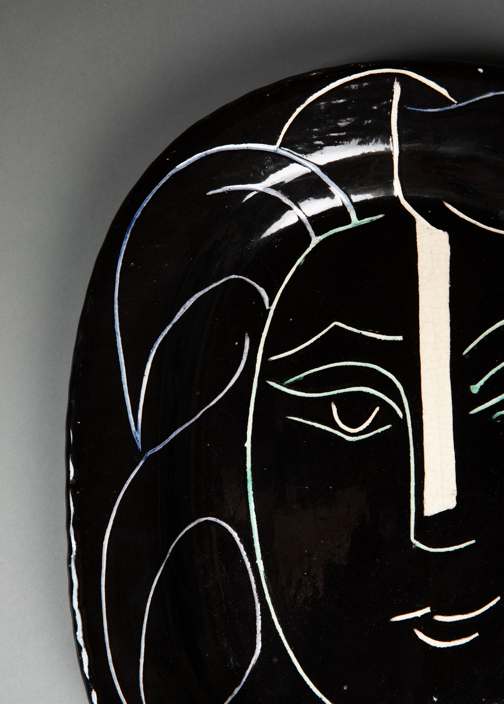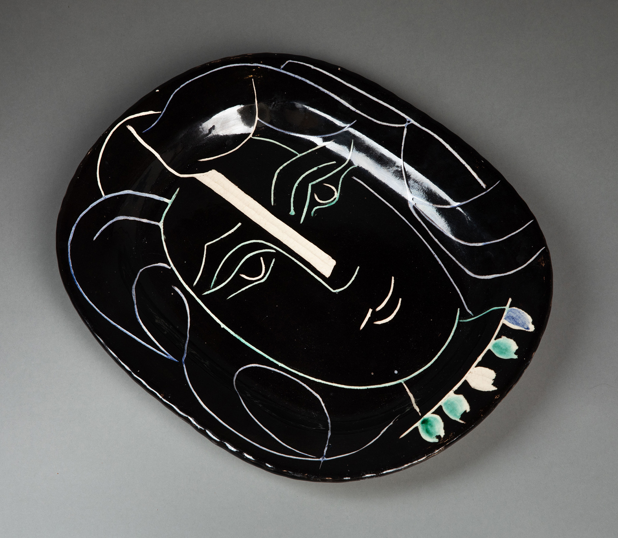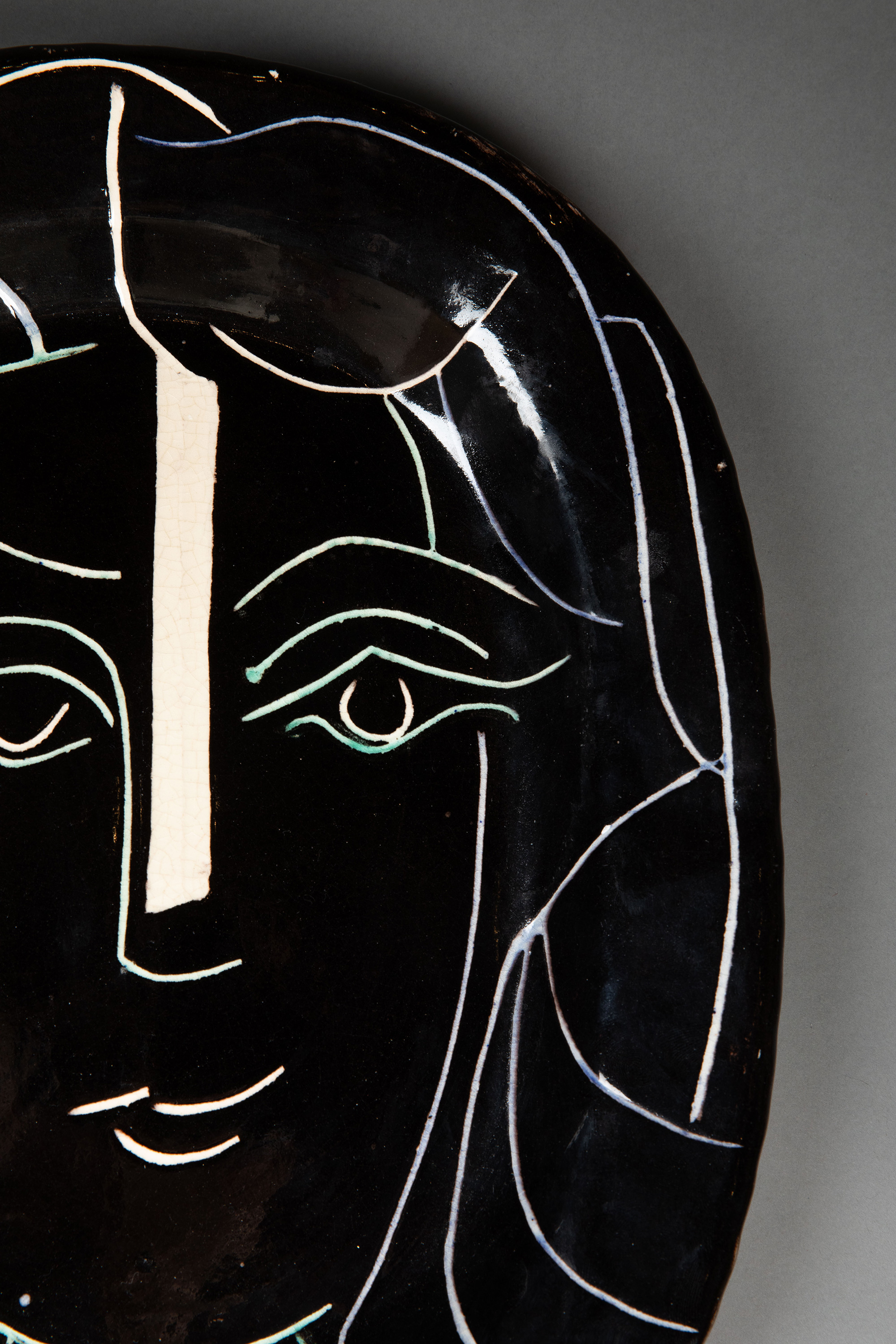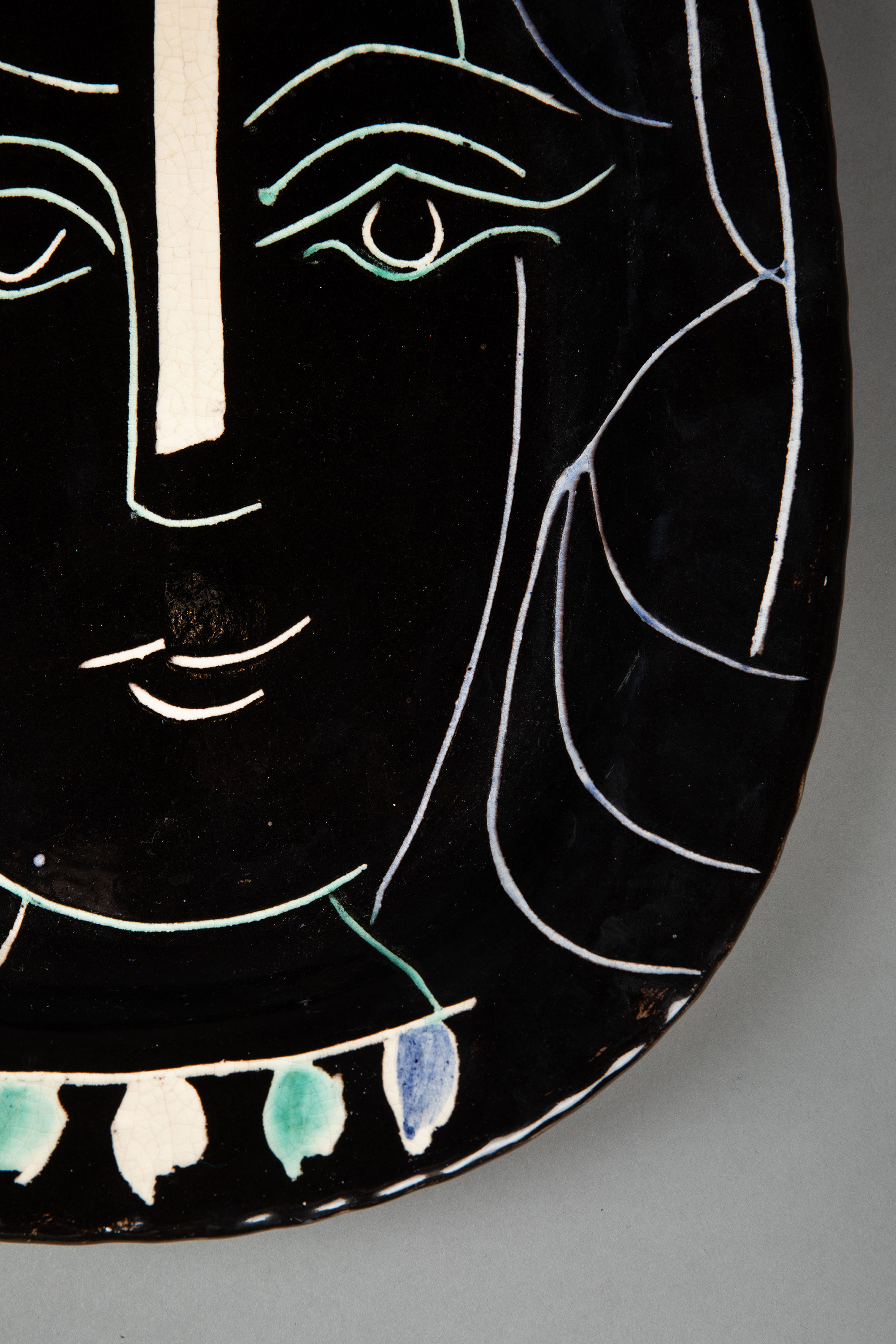 独角鹿西洋古董1953年代西班牙艺术巨匠毕加索与法国Madoura工坊合作出品限量装饰陶盘「Visage Au Collier (A.R.220) 戴项链的面庞 220」