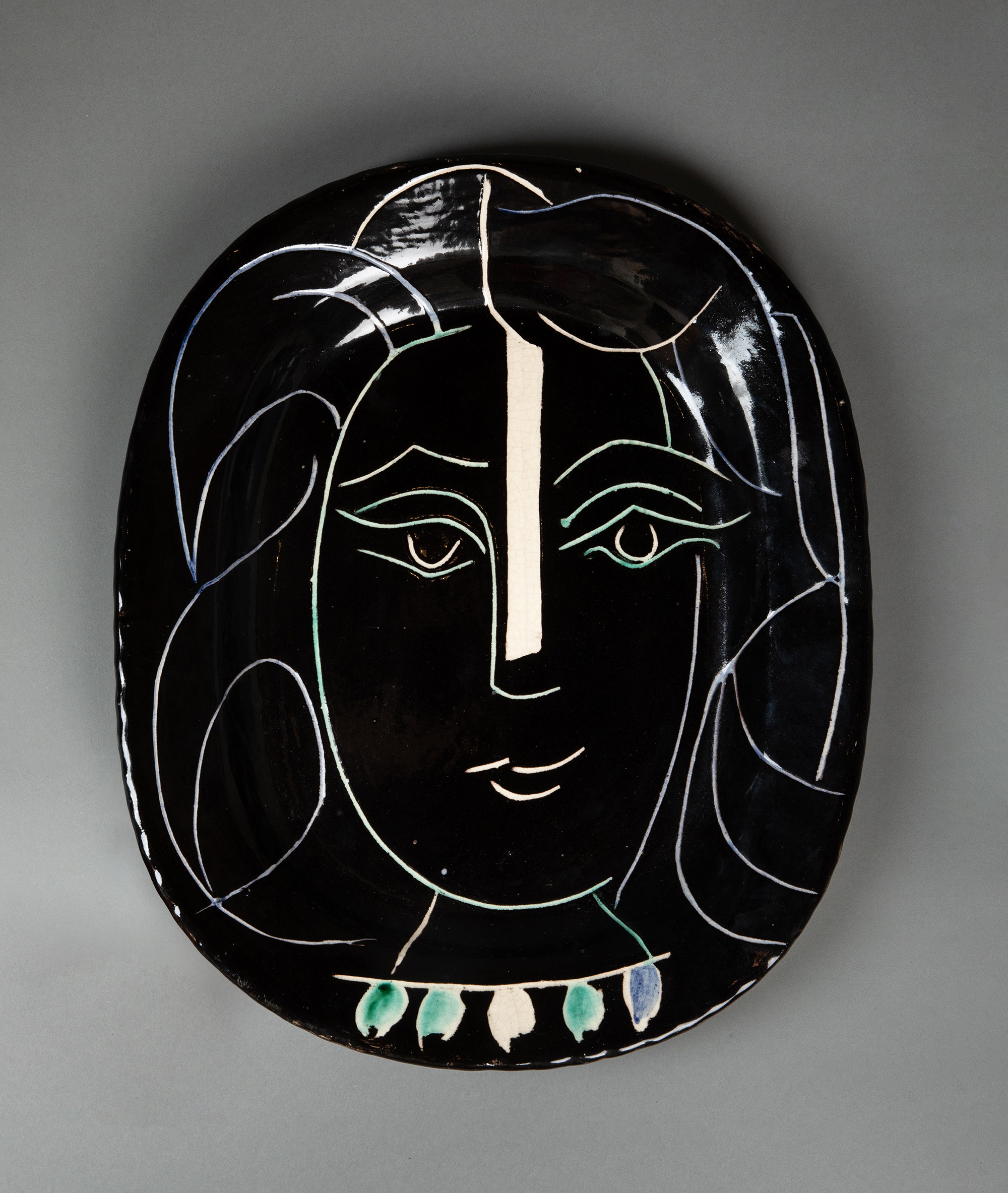 1953年代西班牙艺术巨匠毕加索与法国Madoura工坊合作出品限量装饰陶盘「Visage Au Collier (A.R.220) 戴项链的面庞 220」