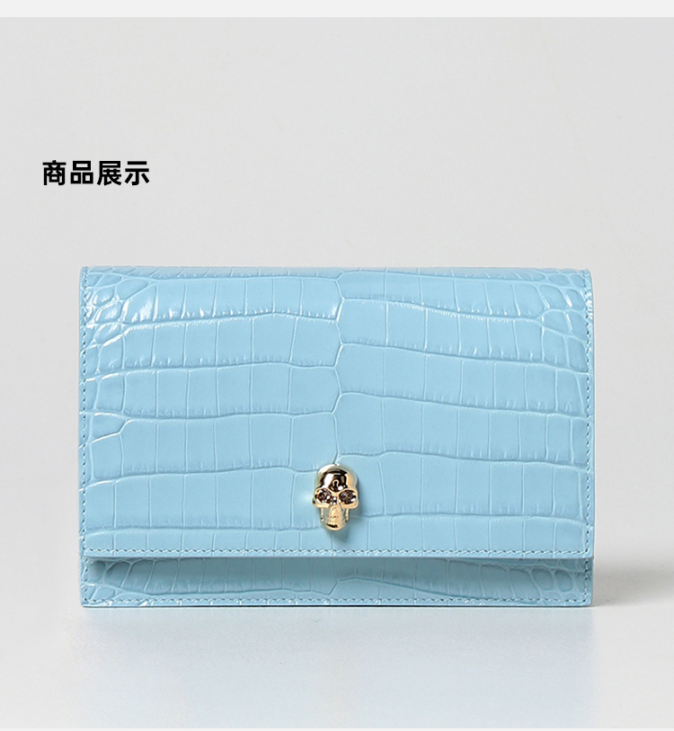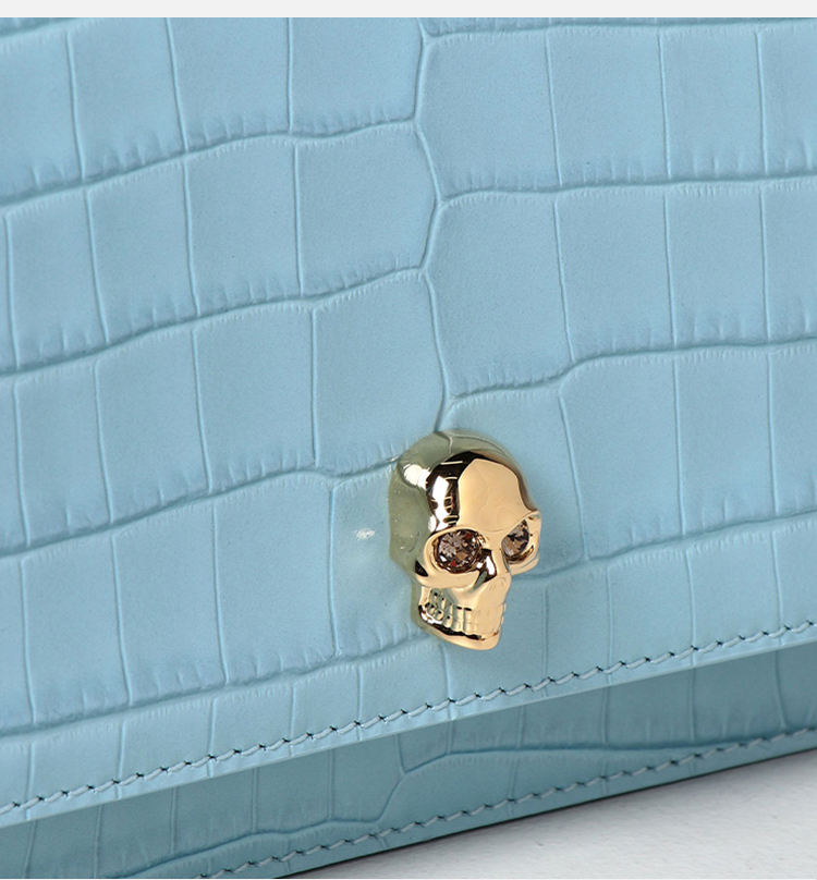 ALEXANDER MCQUEEN 亚历山大麦昆 女士小号鳄鱼纹骷髅斜挎单肩包 浅蓝色 613088 1HB0G 4506