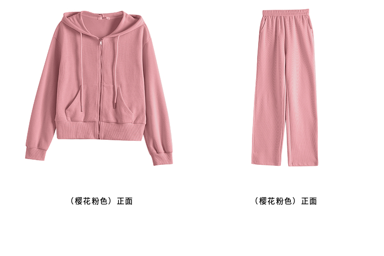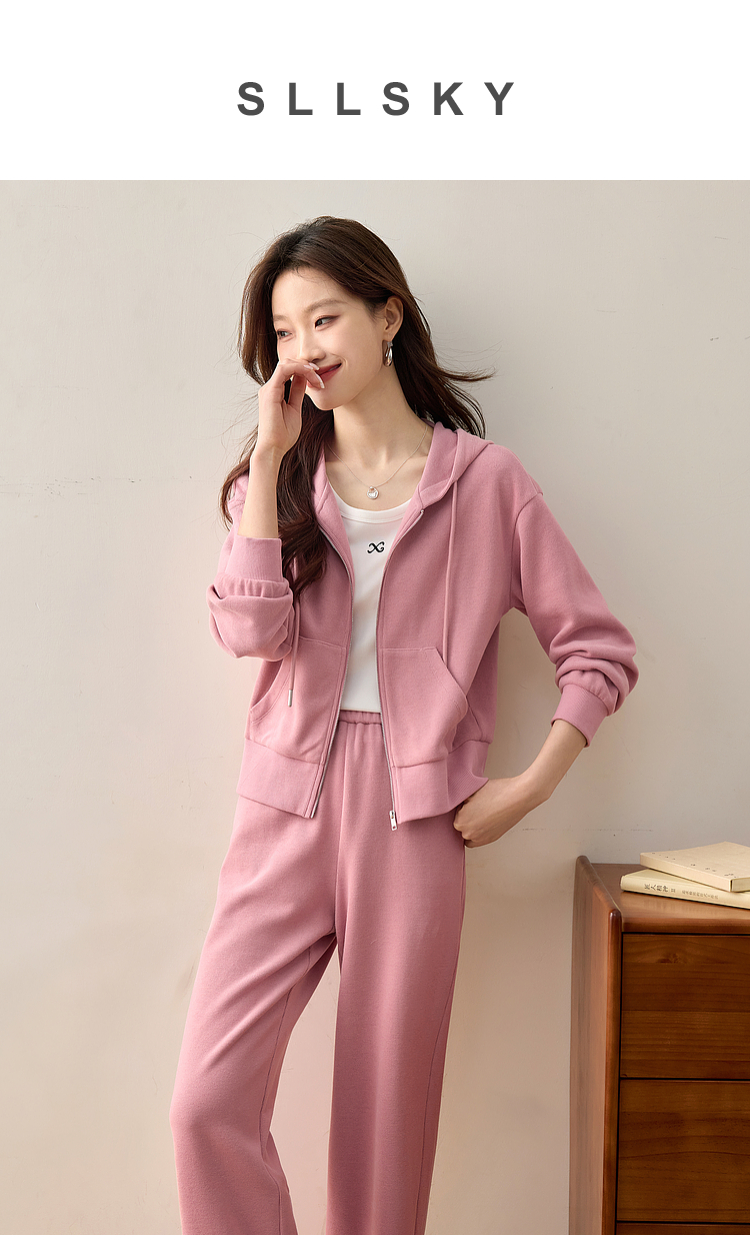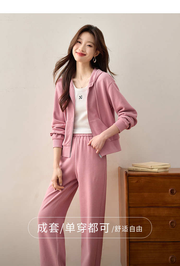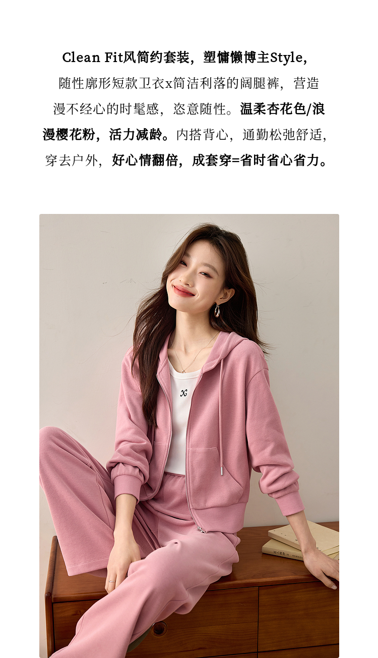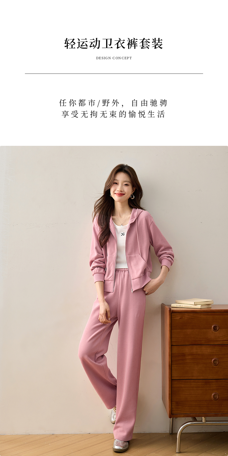 【年终特卖】熙世界粉色运动套装女休闲2025春装新款连帽卫衣外套阔腿裤两件套