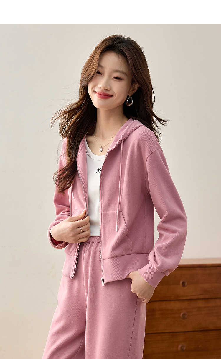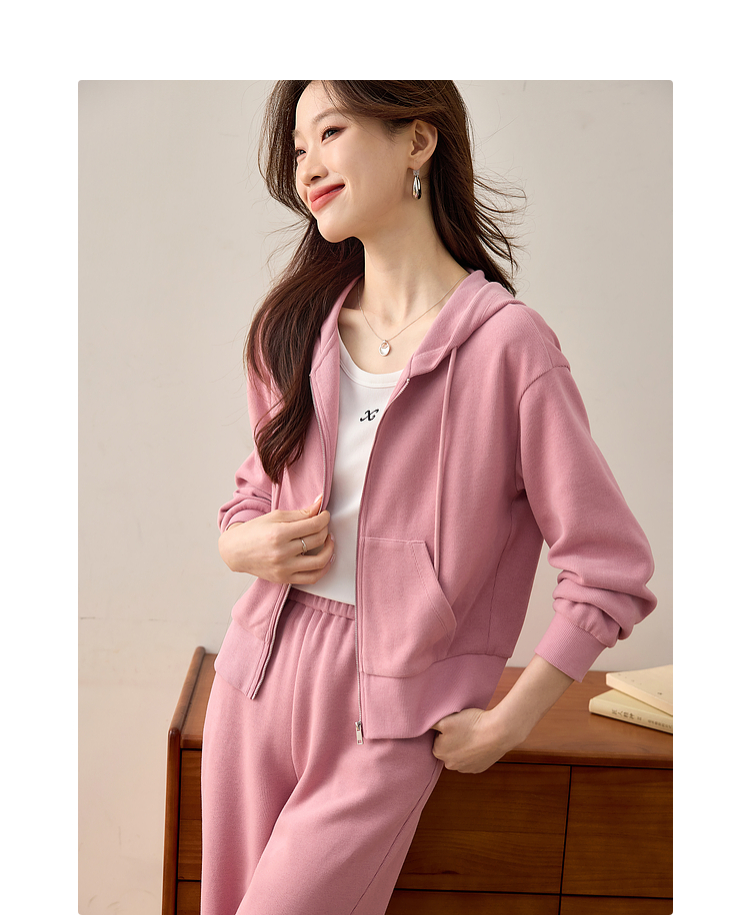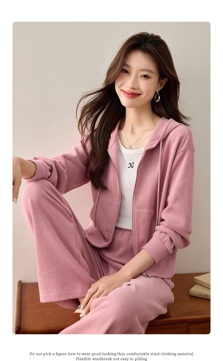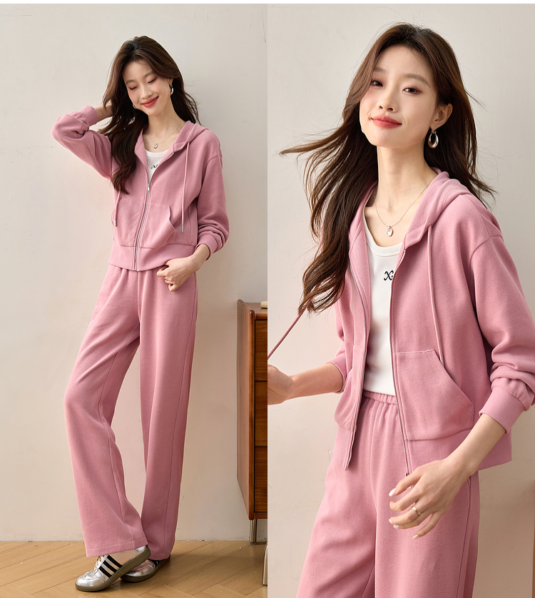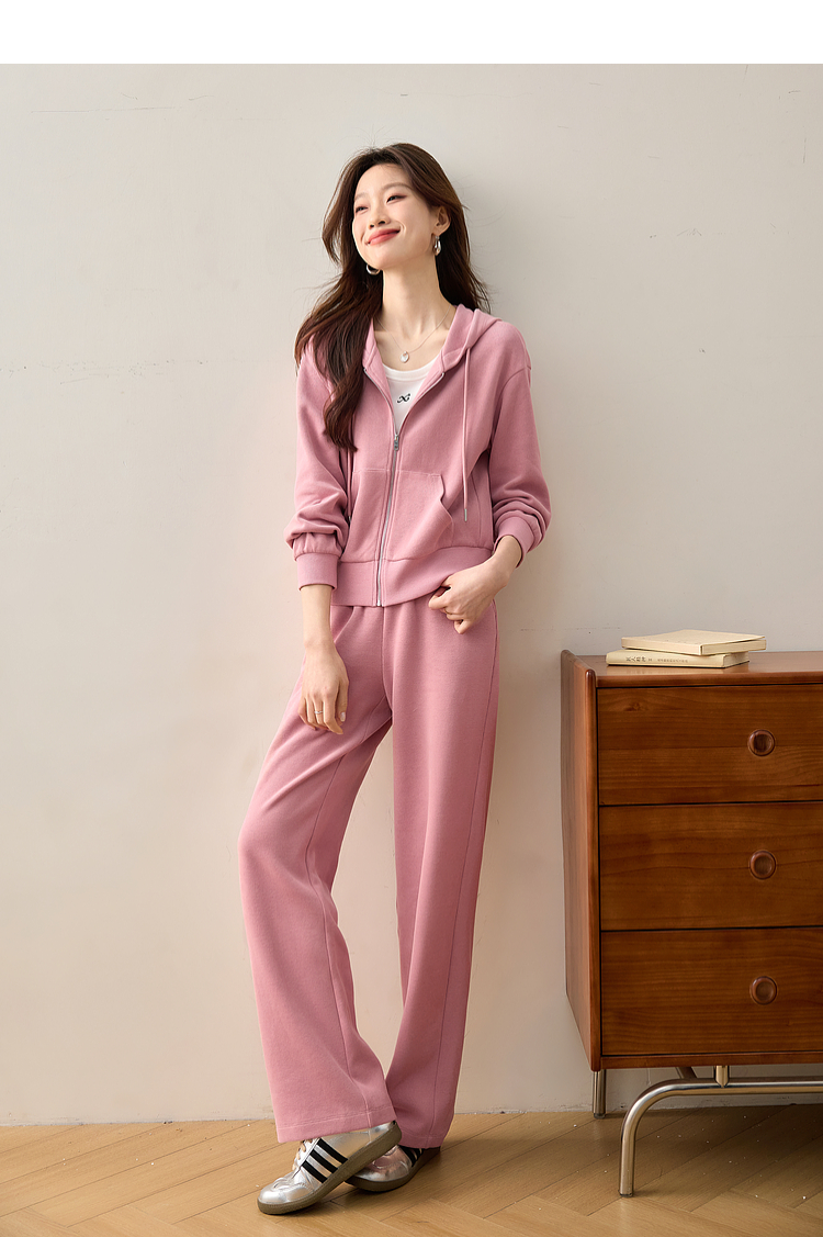 【年终特卖】熙世界粉色运动套装女休闲2025春装新款连帽卫衣外套阔腿裤两件套