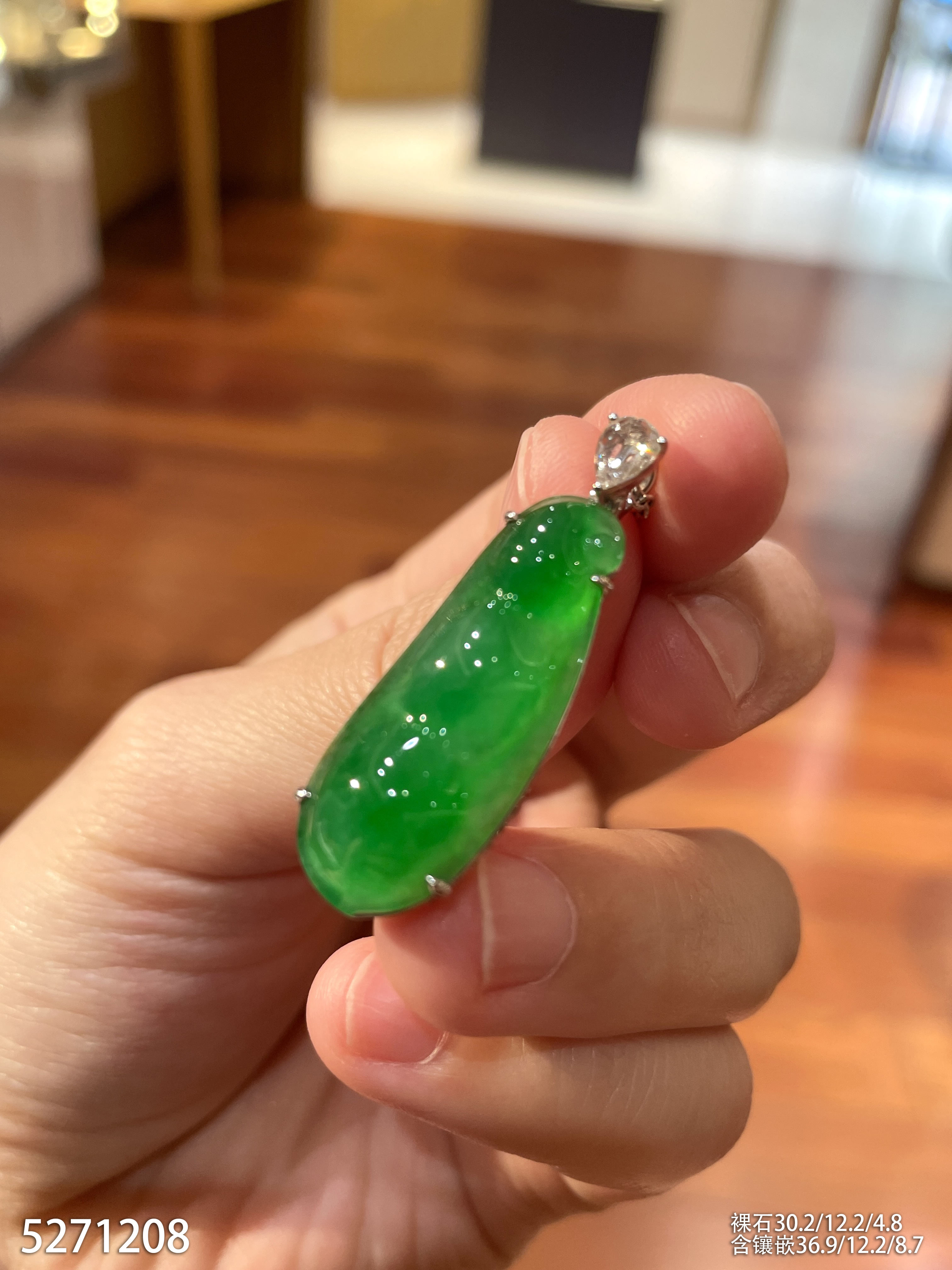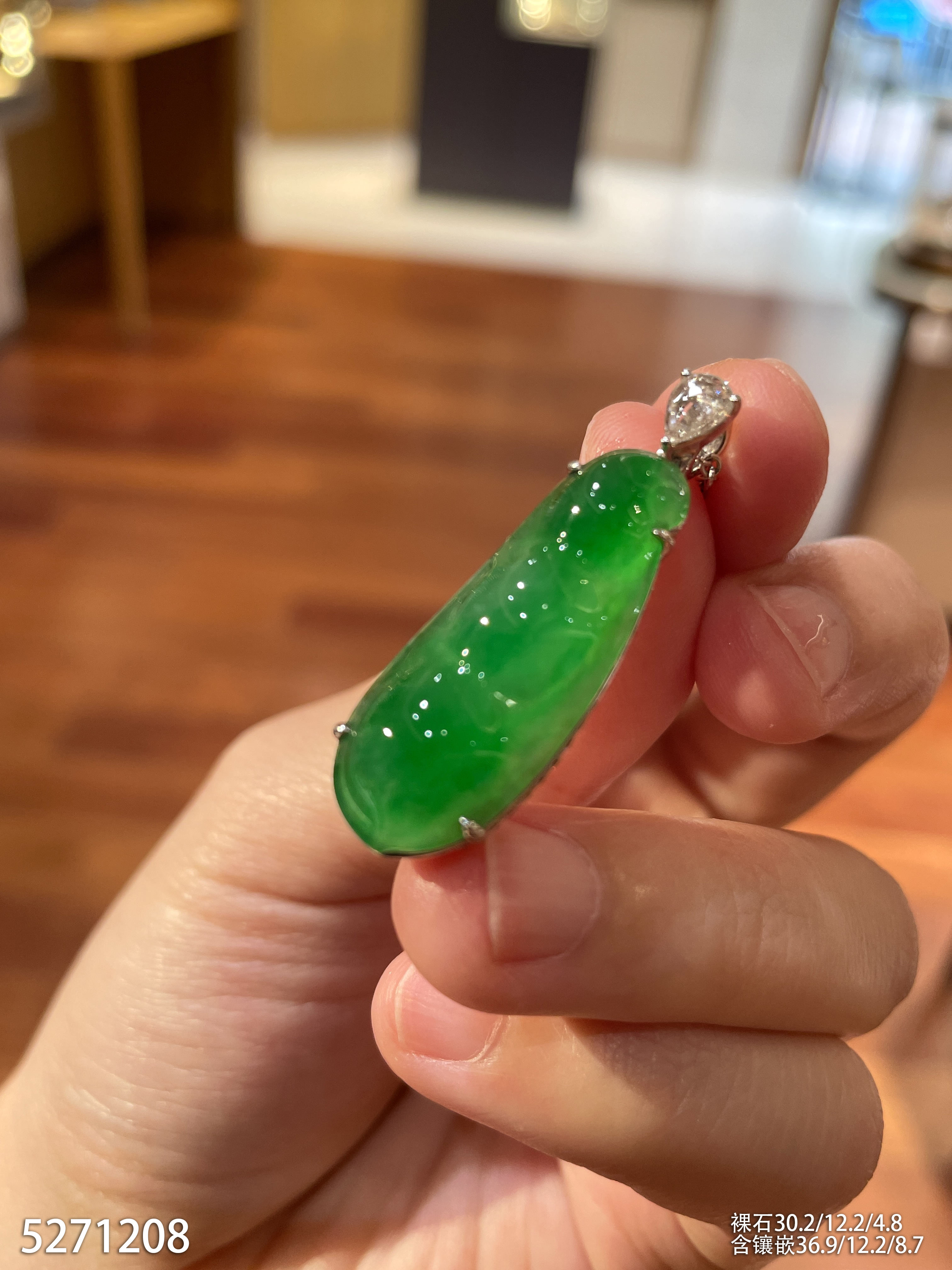 正冰种艳绿福豆吊坠【5271208】具体价格微信咨询