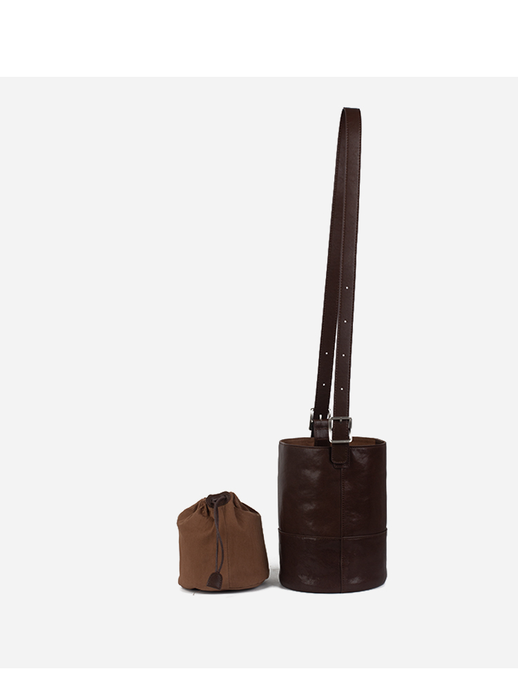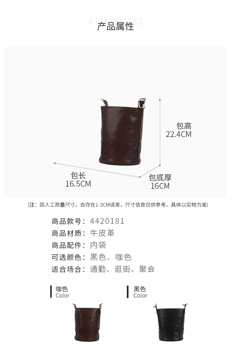 和诚行2025秋冬新款小众设计真皮水桶高级感单肩斜挎包4420181