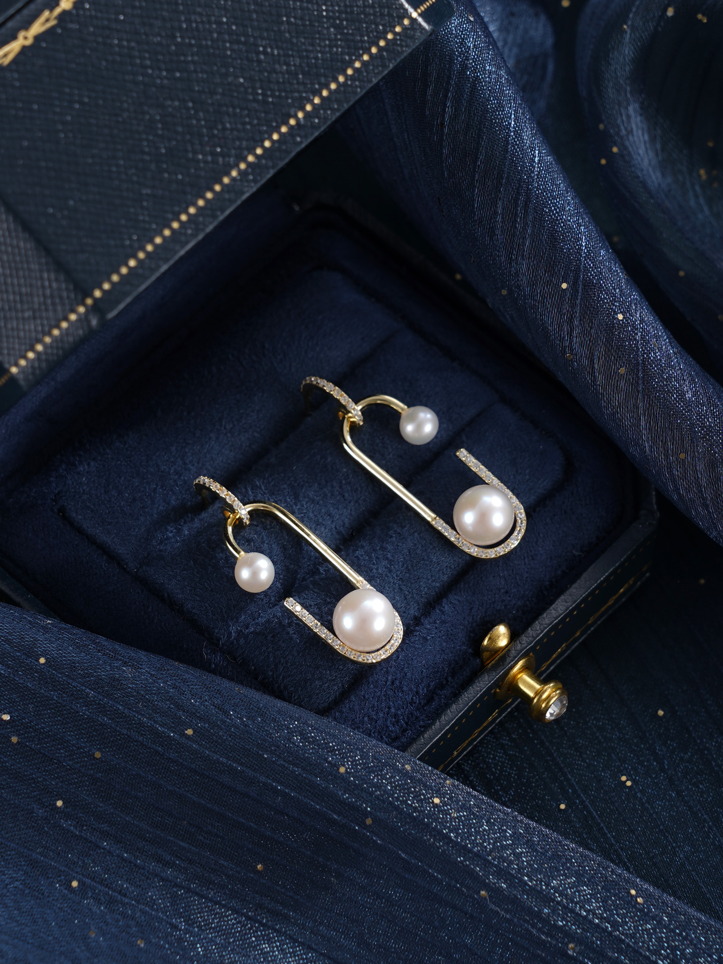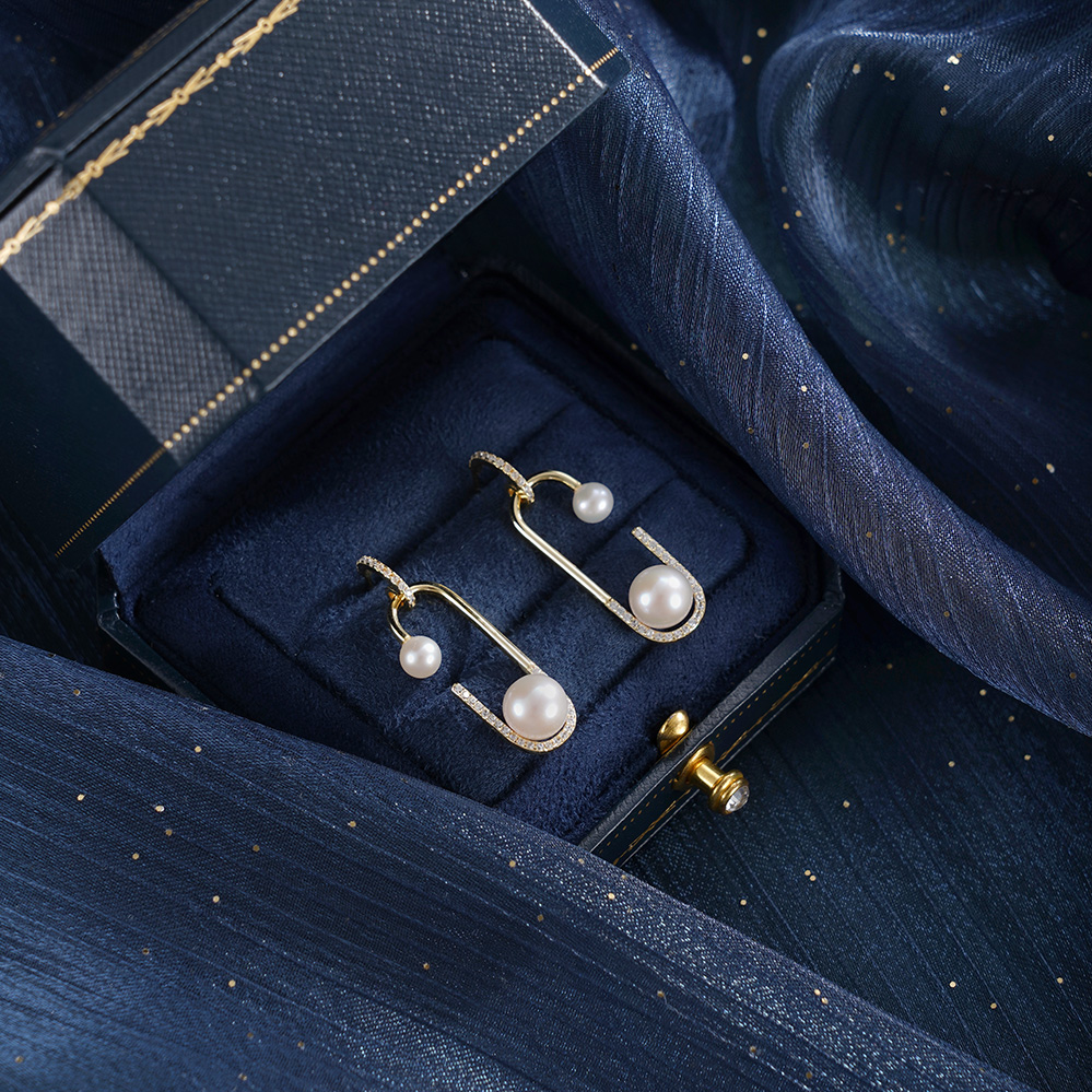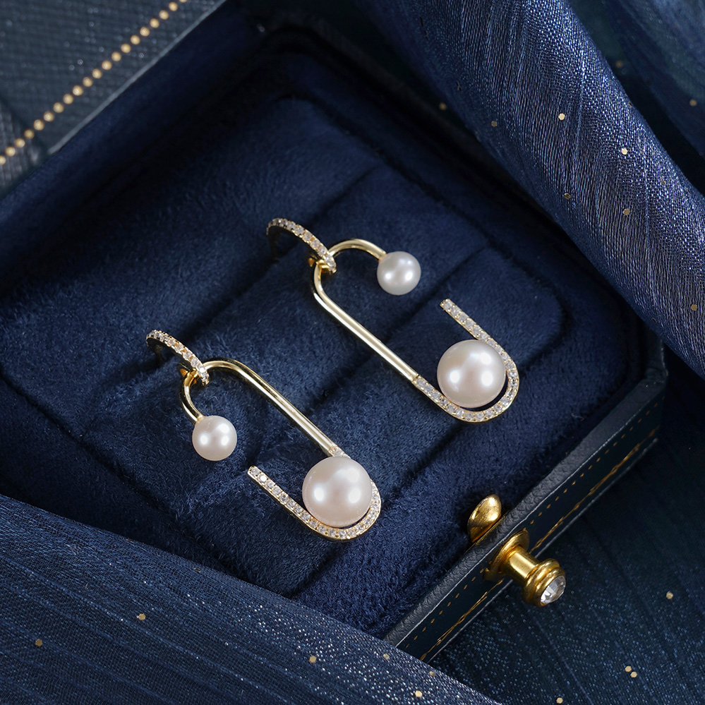 子佩集【珠萦月梦】银S925珍珠惜王妃耳环【MLEH024】4.5mm小珠7.5mm大珠半环双珠镀金回形针2601