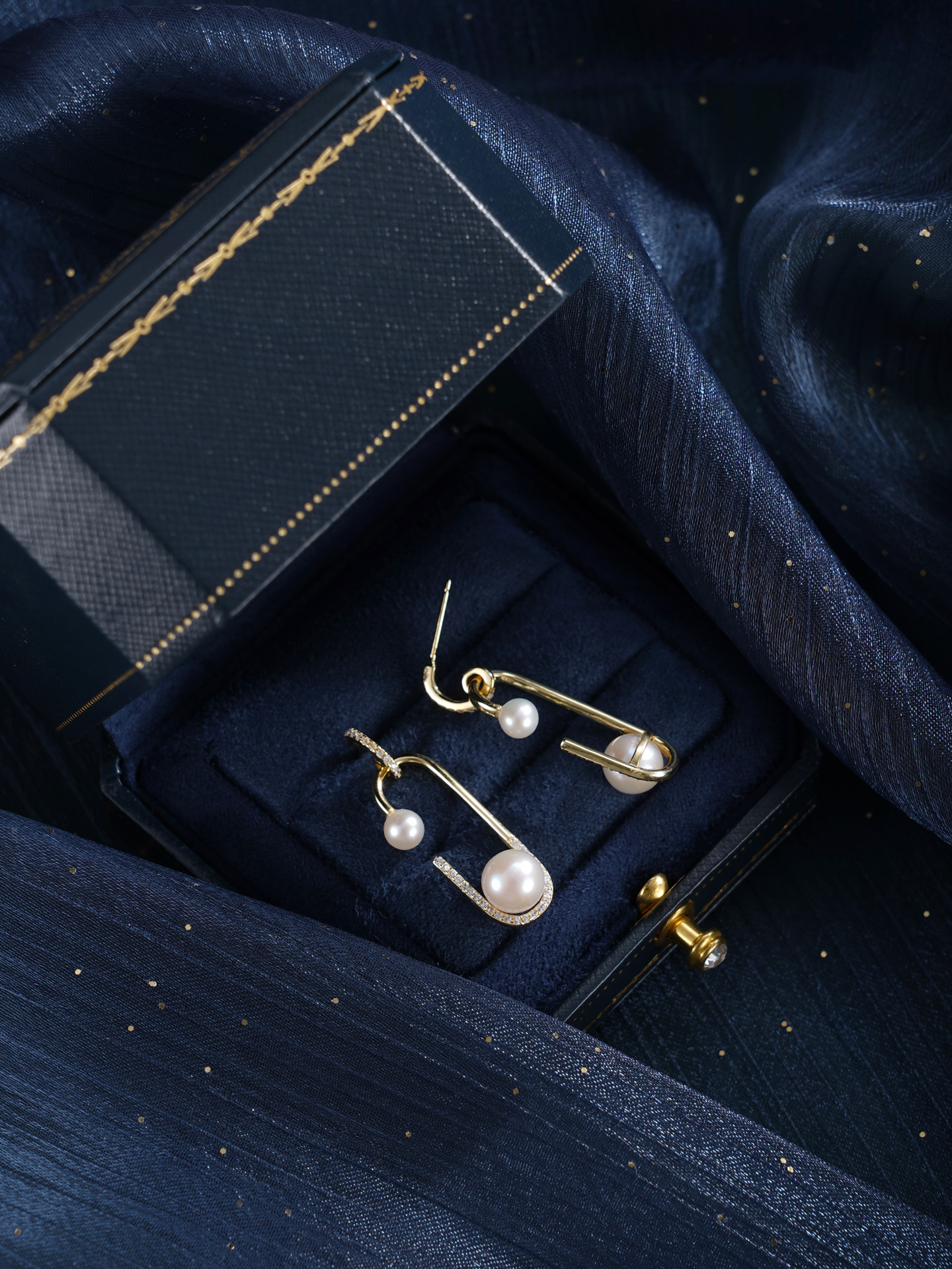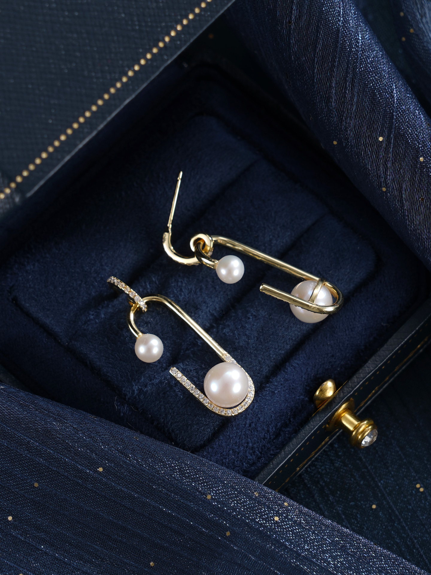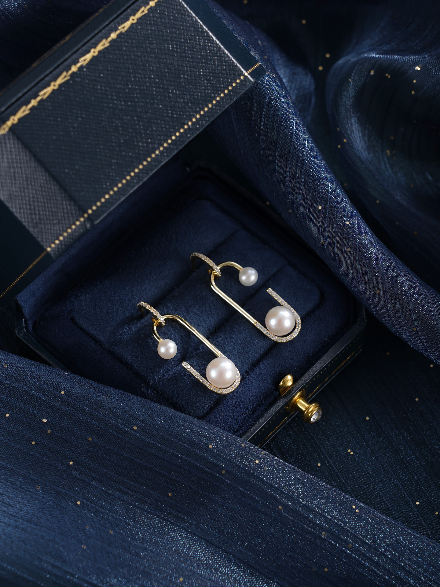 子佩集【珠萦月梦】银S925珍珠惜王妃耳环【MLEH024】4.5mm小珠7.5mm大珠半环双珠镀金回形针2601