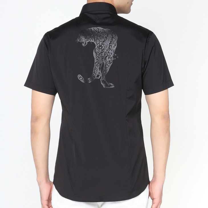 Marco Azzali 黑色豹子胶印短袖衬衫 C5245200