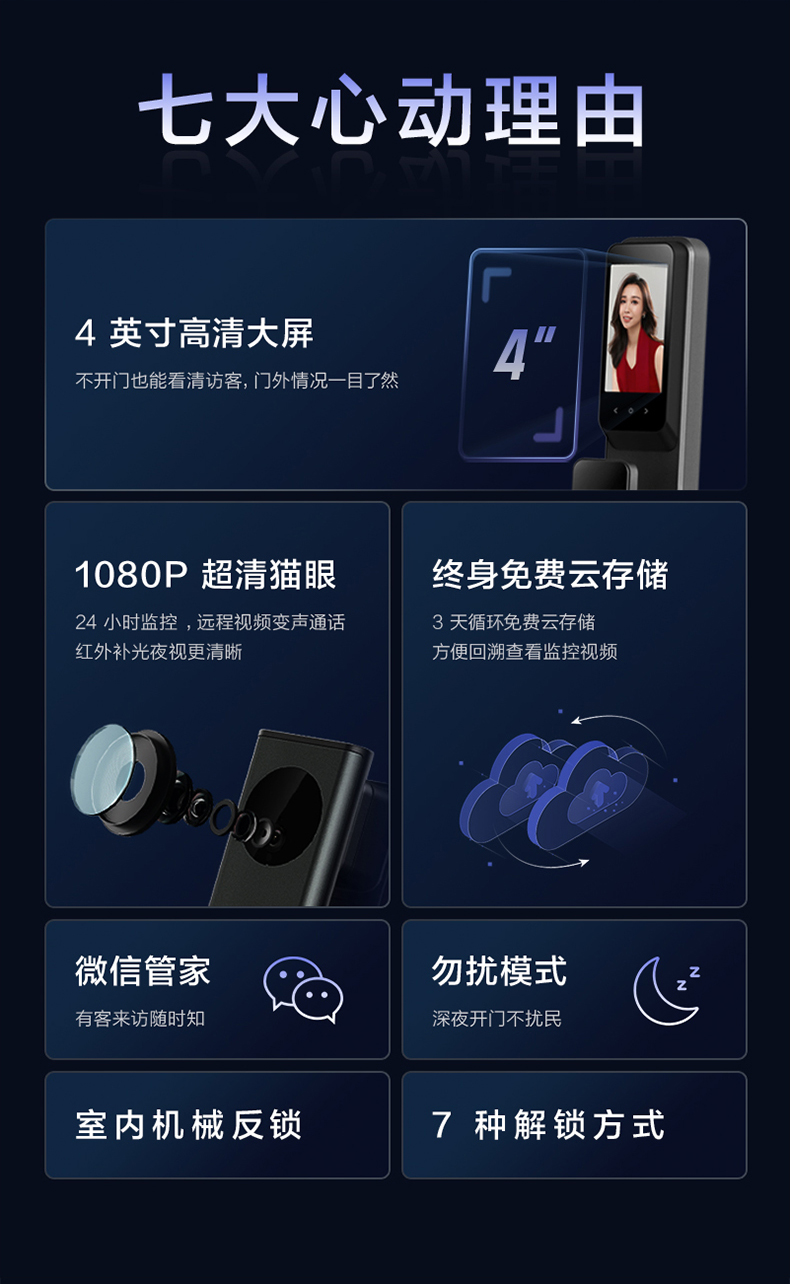 鹿客(LOOCK)P7 Pro 超快识别 超清猫眼 智能锁指纹锁密码锁