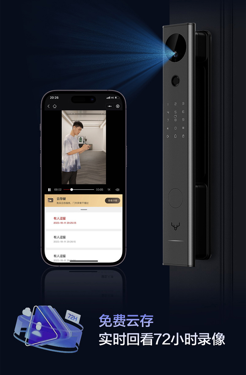 鹿客掌心锁 V5 Max 掌静脉人脸识别猫眼屏智能密码锁APP智联
