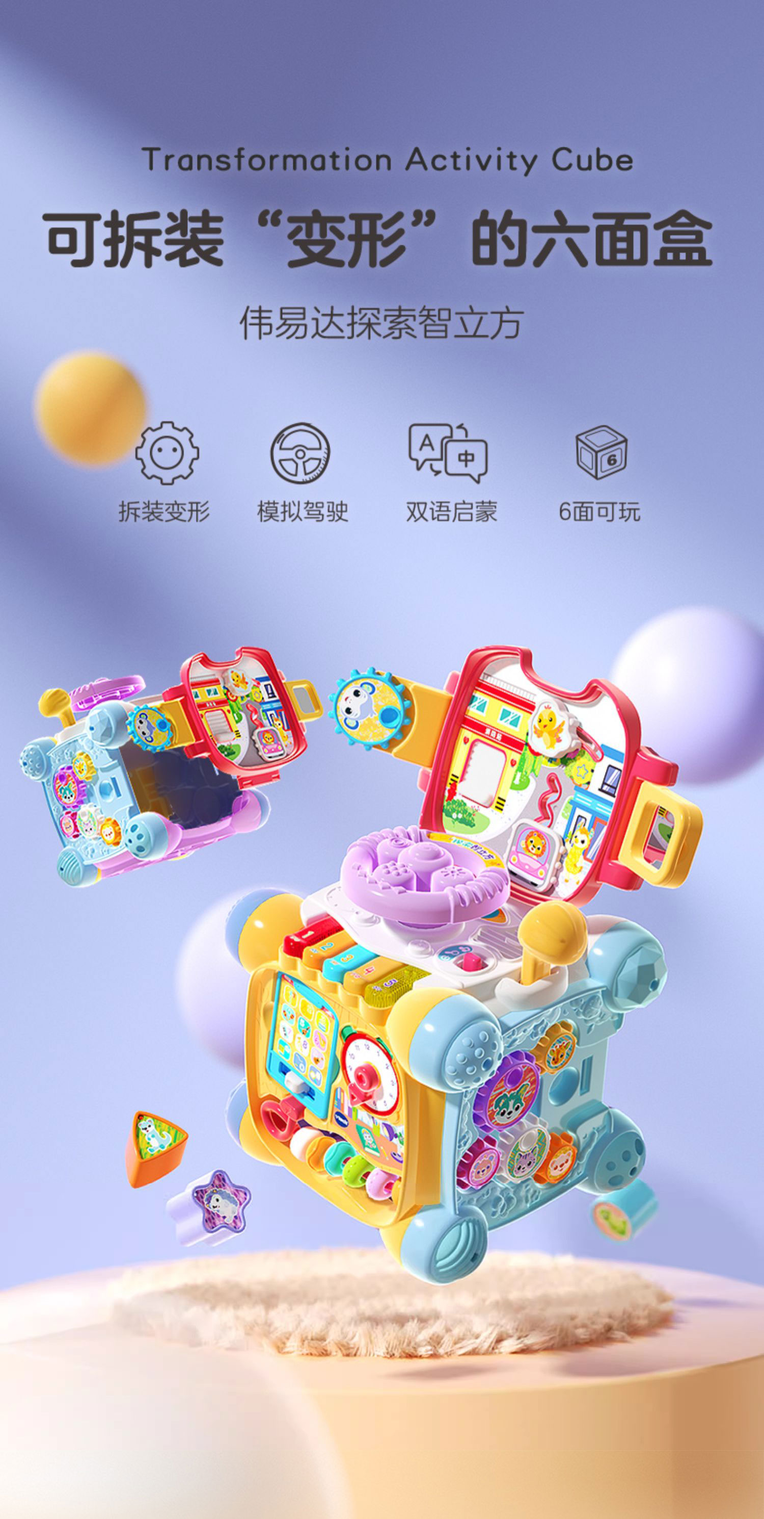新款伟易达探索智立方六面体多功能益智早教玩具2岁宝宝婴儿形状配对