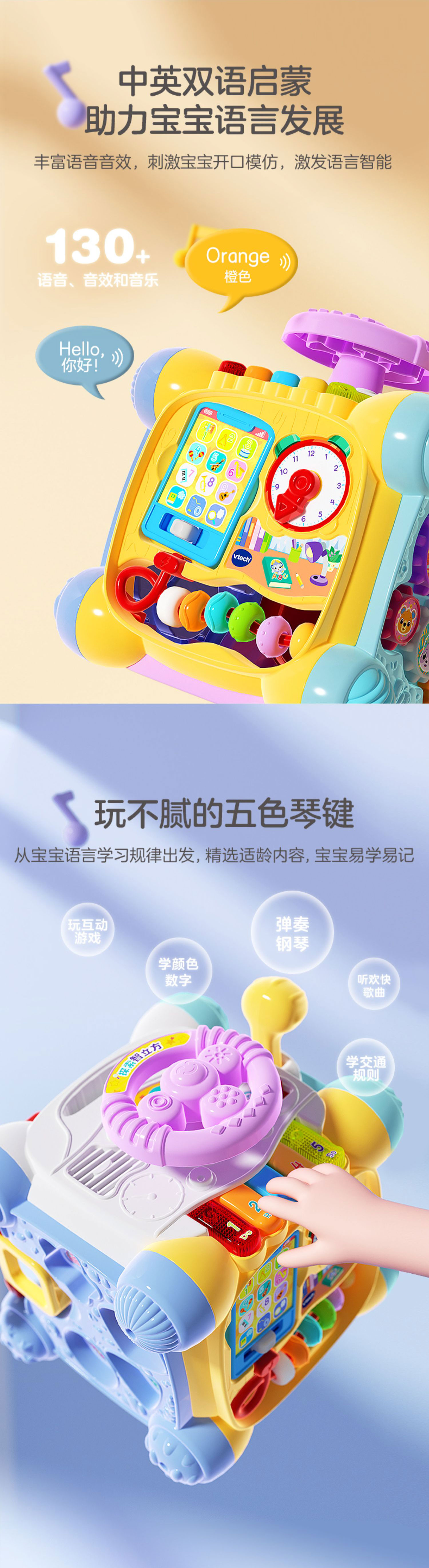 新款伟易达4合1字母巴士拖拉玩具车早教课木琴儿童音乐益智玩具宝宝