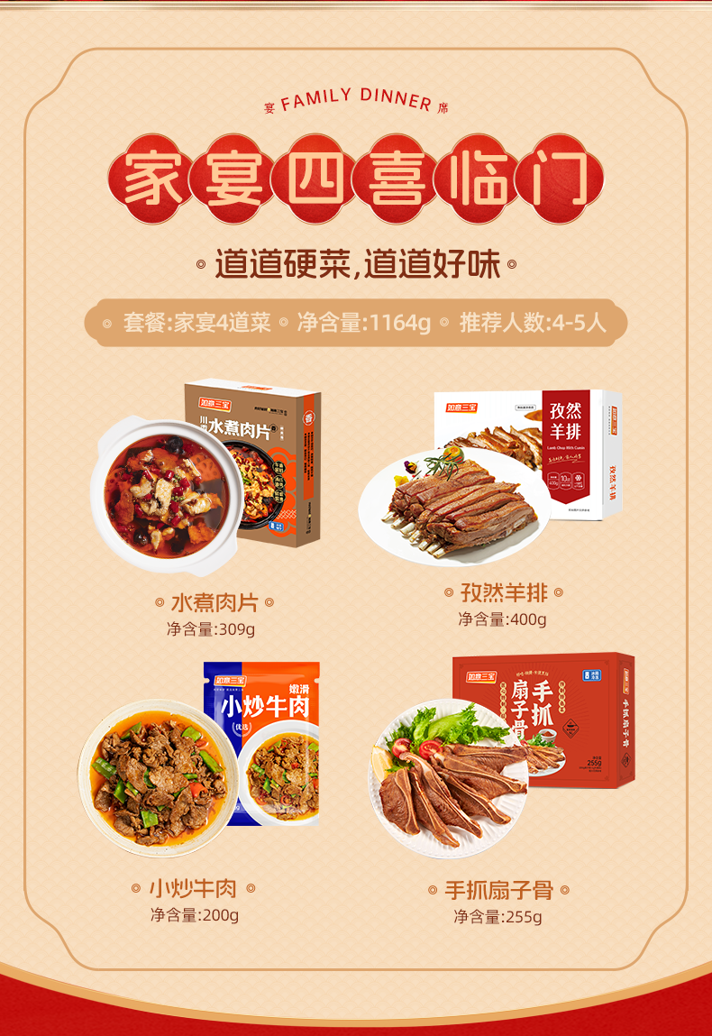 如意三宝四喜临门家宴4道菜1164g(不含礼袋)
