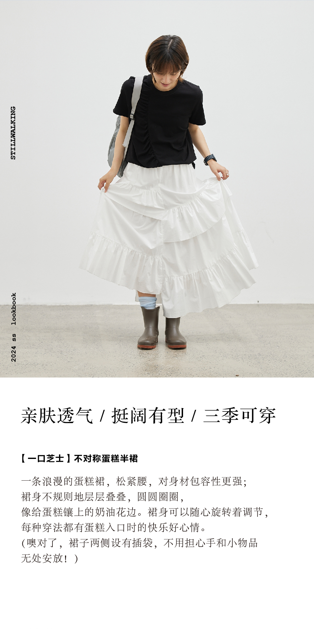 步履不停/4B41095C/不对称浪漫蛋糕长半裙