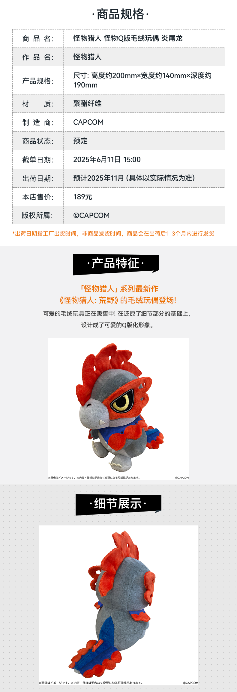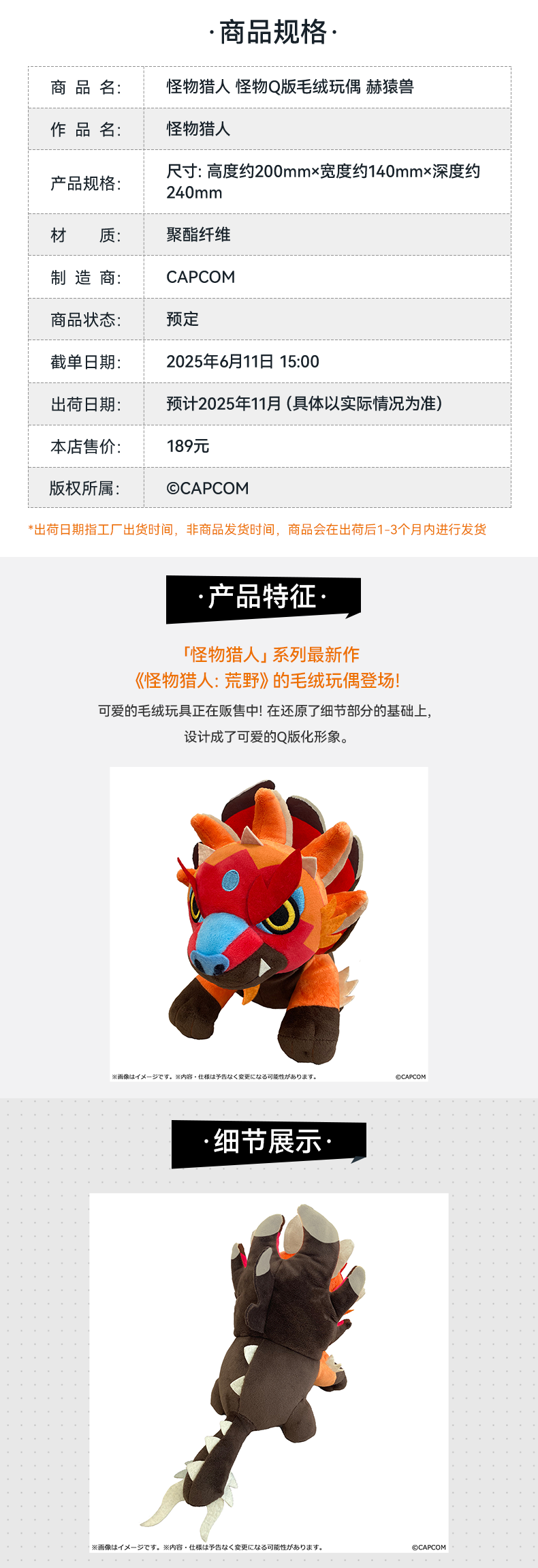【GSC现货】怪物猎人 怪物Q版毛绒玩偶 波衣龙/赫猿兽/炎尾龙