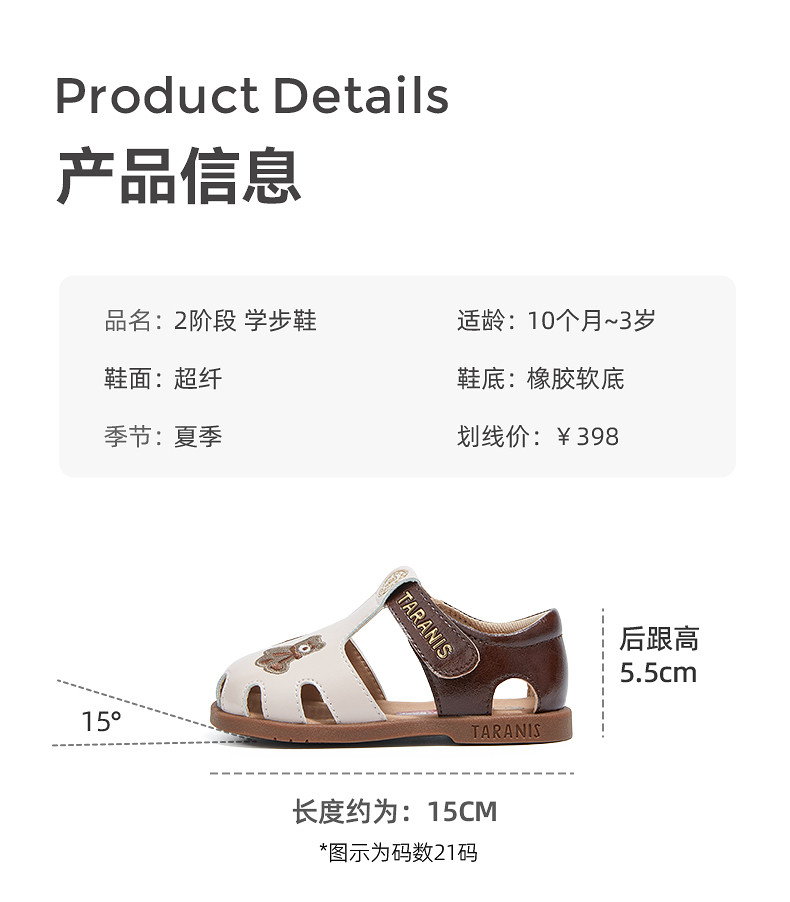 泰兰尼斯218户外男宝宝学步鞋春季新款防撞透气儿童鞋女童机能鞋 T01T5A5884