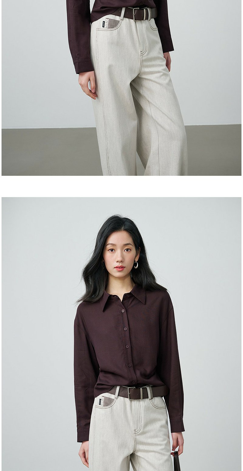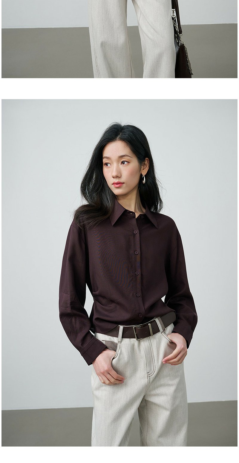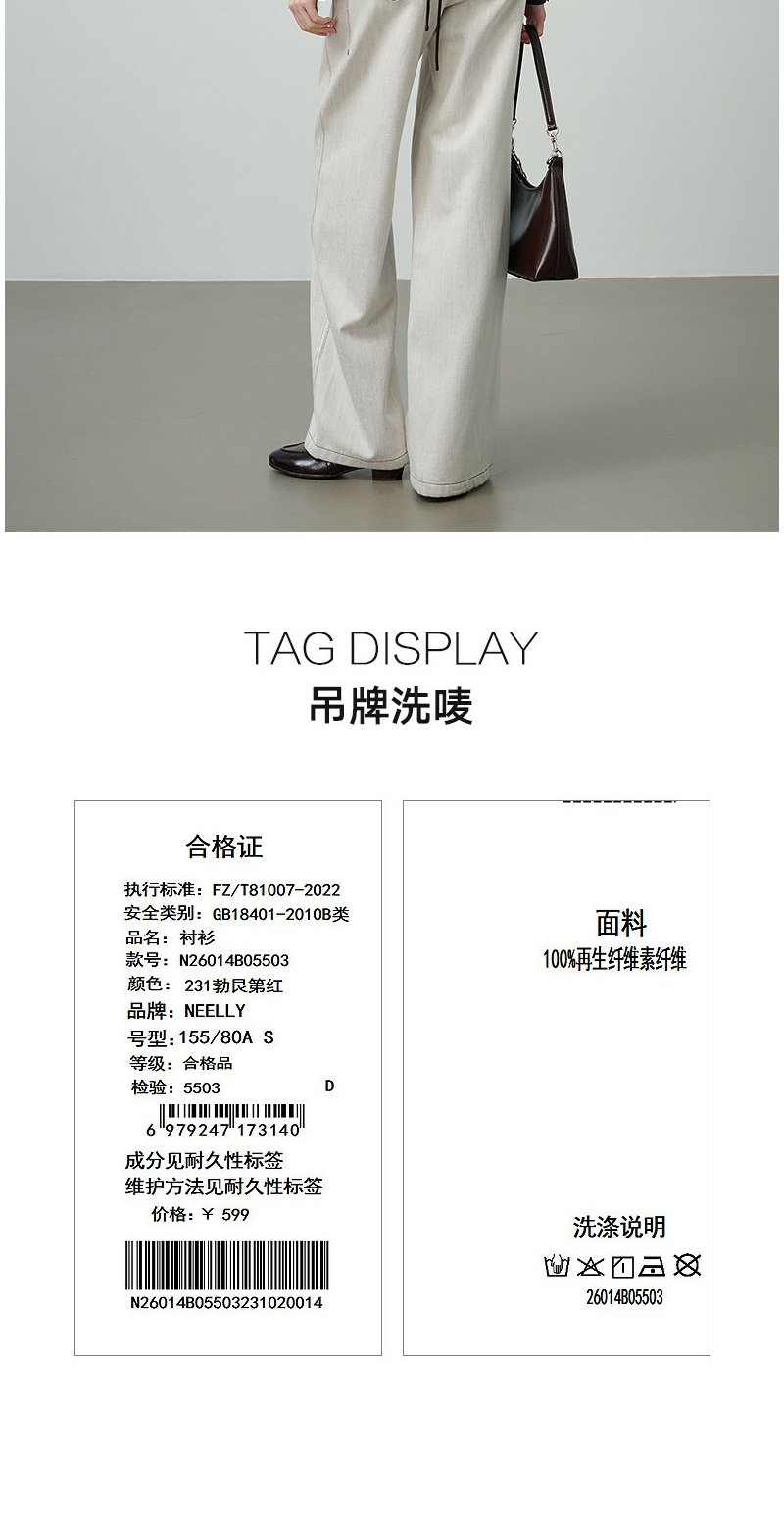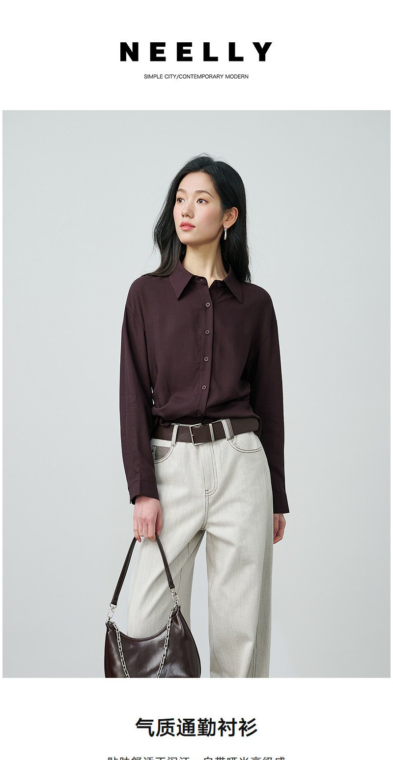 NEELLY纳俪商场同款春季新款休闲百搭翻领衬衫女复古通勤外套N26014B05503